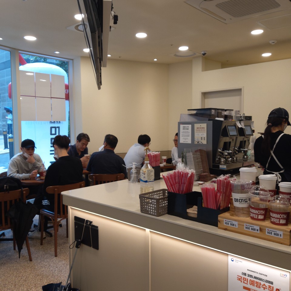 출근길에 새로운 카페에 생겨서 가봤어요. 매머드커피 익스프레스(MAMMOTH COFFEE EXPRESS)라는 곳인데요, 알고보니 꽤 많은 매장을 가진 프랜차이즈인 것 같아요. 저는 처음 봐서 호기심에 들어가봤다가, 이제부터 출근길에 커피 테이크아웃 하려면 여기 와야겠다고 생각했어요.^^