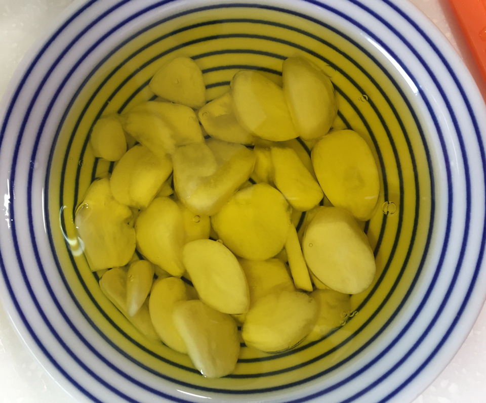 버섯타파스 재료 : 삶은 계란(1/2), 표고버섯(2-3개), 편마늘, 위에 사진엔 잘려서 안보이지만 아보카도 1/2개를 준비했습니다.