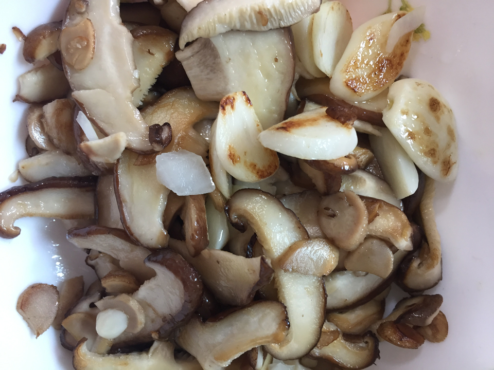 그리고 버섯은 소금간만 해서 편마늘과 함께 복아줬어요. 마늘향 올리브유도 넣고요. 표고버섯이 있어서 표고버섯을 쓰지만 양송이나 새송이 버섯이면 더 좋을 것 같아요.^^ 표고버섯이 쫄깃한 식감과 향이 있어서 나쁘진 않아요!