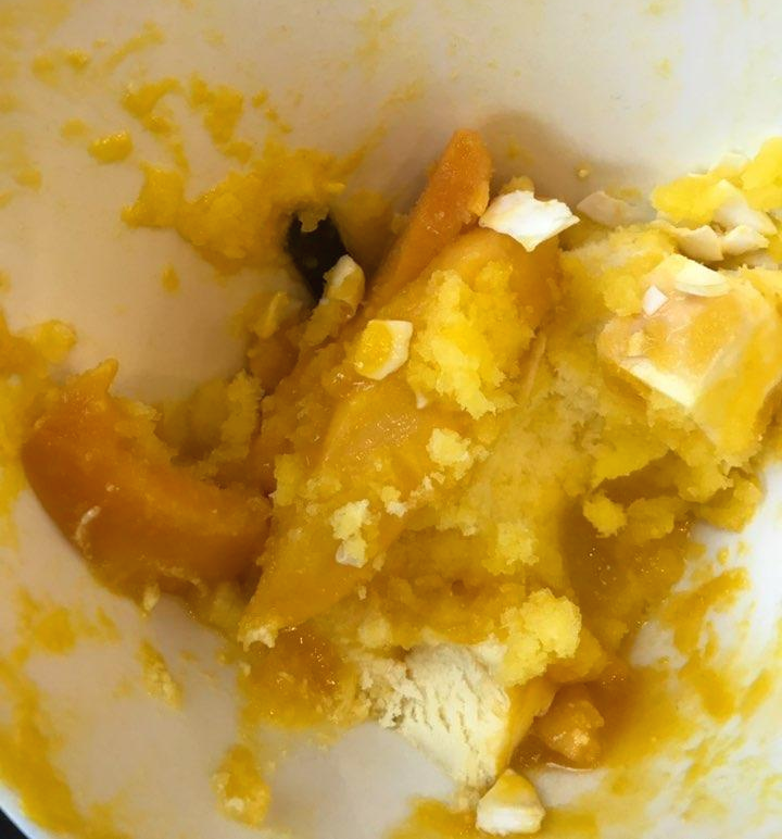할리스 망고 치즈케익 빙수에는 코코넛 플레이크도 뿌려져 서빙되는데요, 중간중간 씹히는 재미가 있었어요. 상큼한 망고와도 은근 잘 어울리고요. 그런데 저는 코코넛 보다도 치즈케이크 조각이 입맛에 더 맞아서 치즈 케이크 조각만 찾아 먹었답니다.(친구야..미안;;) 망고보다도 치즈케이크 조각이 더 많이 들어있었다면 좋았을 걸 하는 아쉬움이 남기도 했고요.