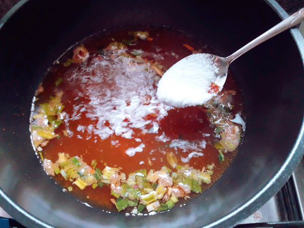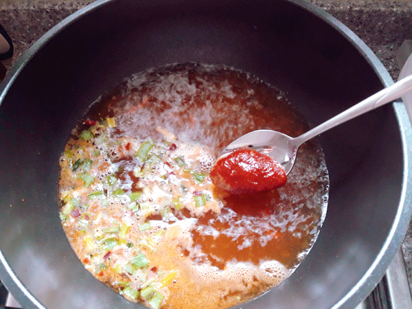 3. 끓는 물에 고추장과 설탕도 잘 풀어줍니다.