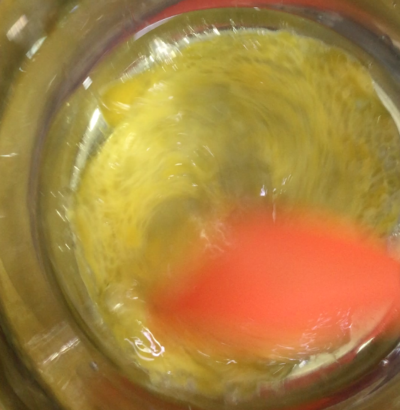계란과 식용유를 섞어 줍니다. 밝은 색이 될 때까지 열심히 저어줬어요. 식용유는 조금 적게 넣고 나중에 추가로 섞어 줘도 될 것 같아요. 저는 한번에 다 넣고 섞고 박력분 분량으로 조절하기로 했습니다.