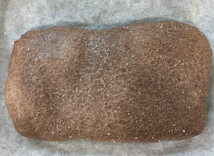 꼭 고기에 밑간을 한 것 같네요.^^ 30분 예열한 오븐에서 구워줬더니 오른쪽같이 됐어요. 이게 사진이 크기가 달라서 그렇지 커진 거 아닙니다. 거의 부풀지는 않았어요. 위쪽에 약간의 크랙들이 생겼는데 버터를 발라줬다거나 슈가파우더 같은 것이었으면 훨씬 더 크랙이 생겨서 보기 좋았을 것 같습니다. 이대로 15분 정도 식힌다음 슬라이스를 해줍니다.