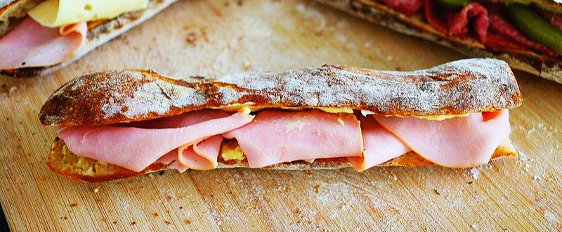 잠봉뵈르는 프랑스의 대표적 빵인 바게트를 반으로 자른 뒤 그 속에 얇게 저민 햄과 버터를 넣은 샌드위치에요. 여기서 햄을 불어로 잠봉(Jambon) 그리고 버터를 뵈르(Beurre)라고 하는데 이를 합쳐 잠봉뵈르라고 부른다고 해요. 이 두 재료를 바게뜨 빵에 끼워 넣으면 아주 쉽게 잠봉뵈르 샌드위치가 완성!