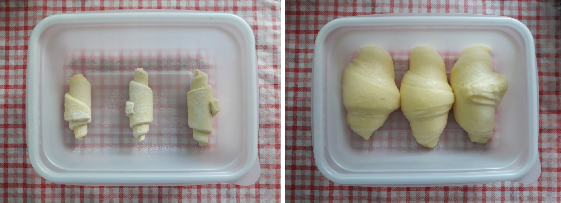 단 너무 오래 발효하면 크로와상생지 모양이 유지되지 않고 흘러내리니 주의.