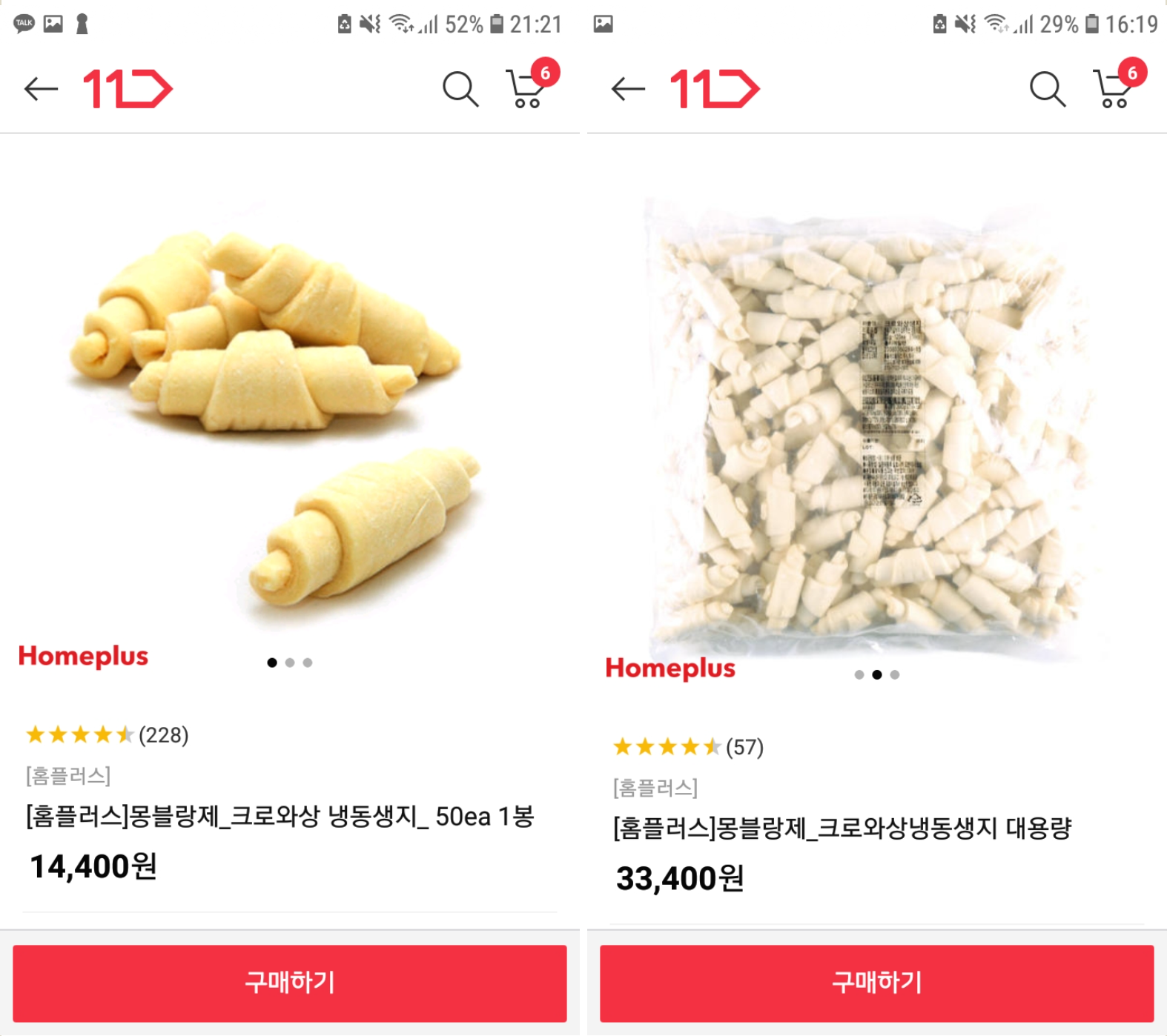 저는 홈플러스에서 판매하는 몽블랑제 크로와상 냉동생지 50개묶음을 구입했어요.