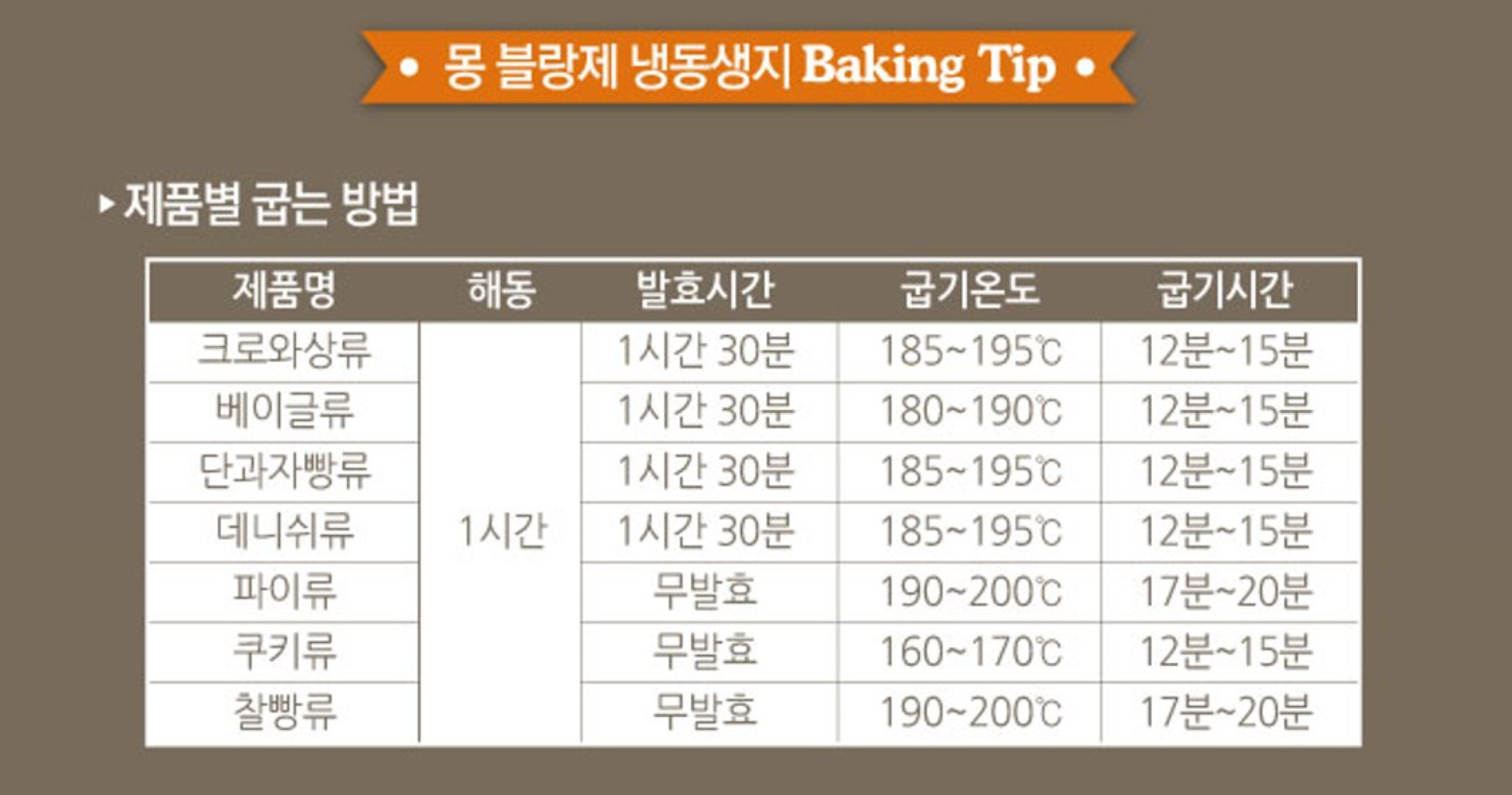 냉동생지는 굽기에 앞서 발효 시간이 필요합니다.