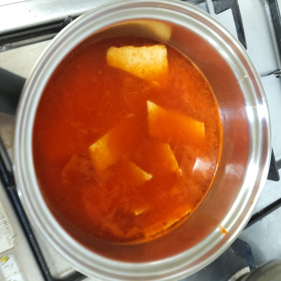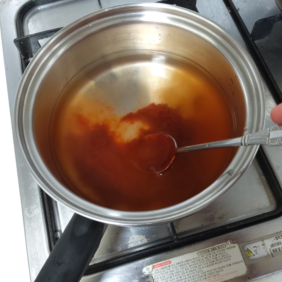 1. 냄비에 물을 넣고 미리 만들어 둔 양념장을 살살 풀어줍니다.