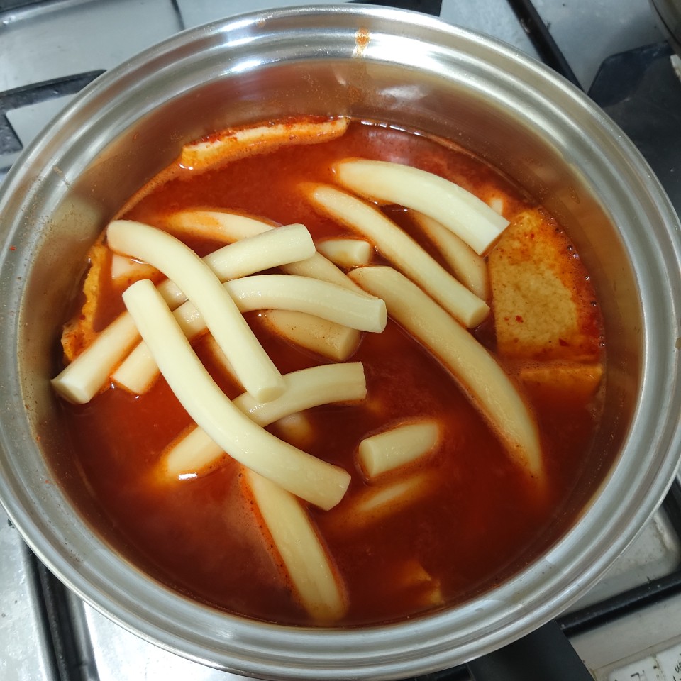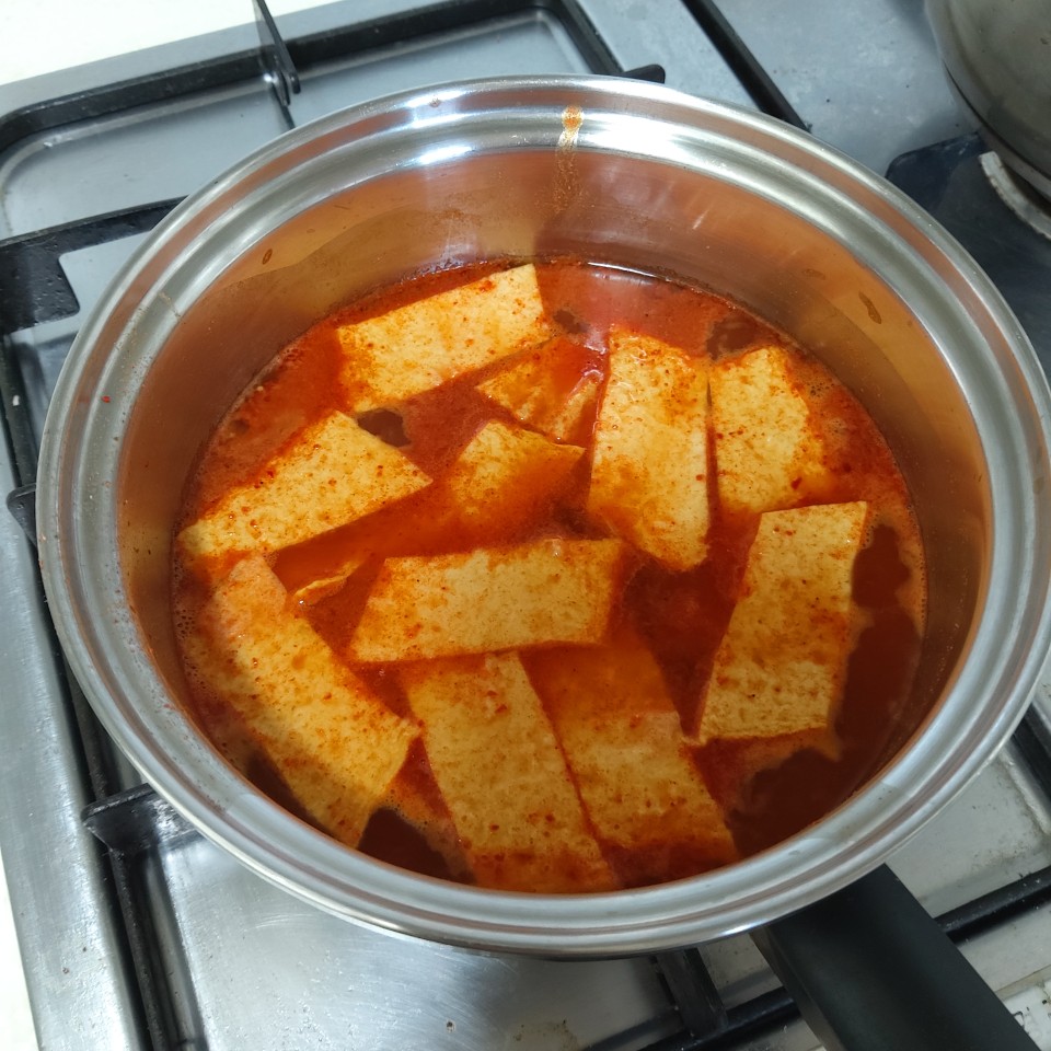 3. 어묵이 둥둥 뜨기 시작하면 밀떡을 넣어주고요