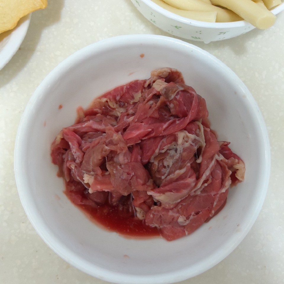 - 차돌박이 역시 해동한 후 약간의 맛술+간장에 밑간 해놓기