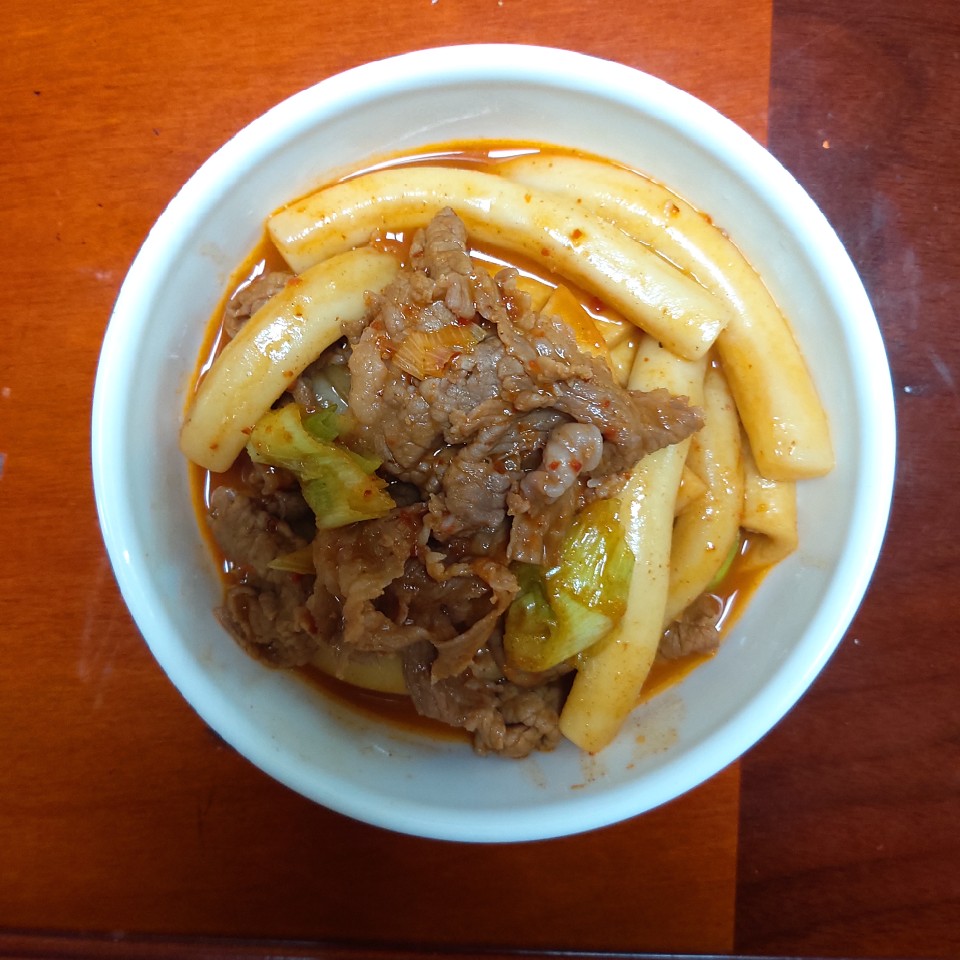 폭식하지 않으려고 작은 그릇에 담았더니 너무 소박하네요! 쫄깃쫄깃한 밀떡과 차돌박이 한 점 집어서 꿀꺽하면 세상 행복해지는 맛^^
