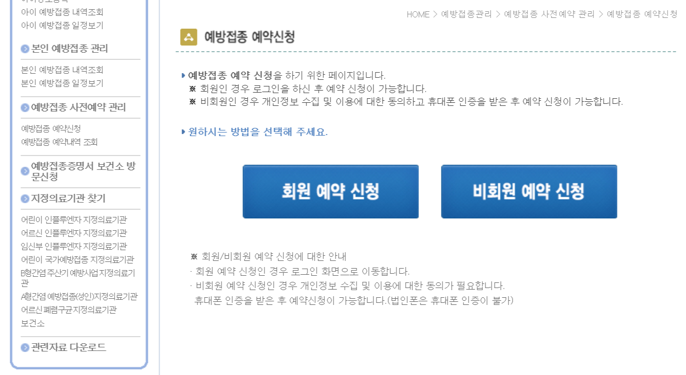 코로나19 유행 관련 의료기관 내 감염전파 차단을 위한 사전 예약시스템도 마련되어 있어요. 예방접종도우미 페이지 왼편에 '예방접종 사전예약' 메뉴를 활용하여 미리 예약하시고 방문하시면 의료기관 내 대기시간을 단축할 수 있다고 하네요.