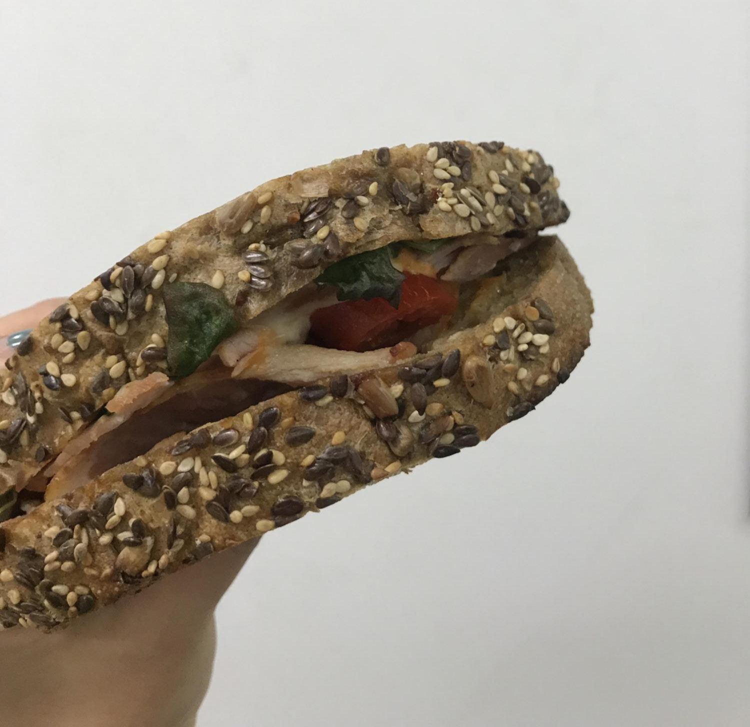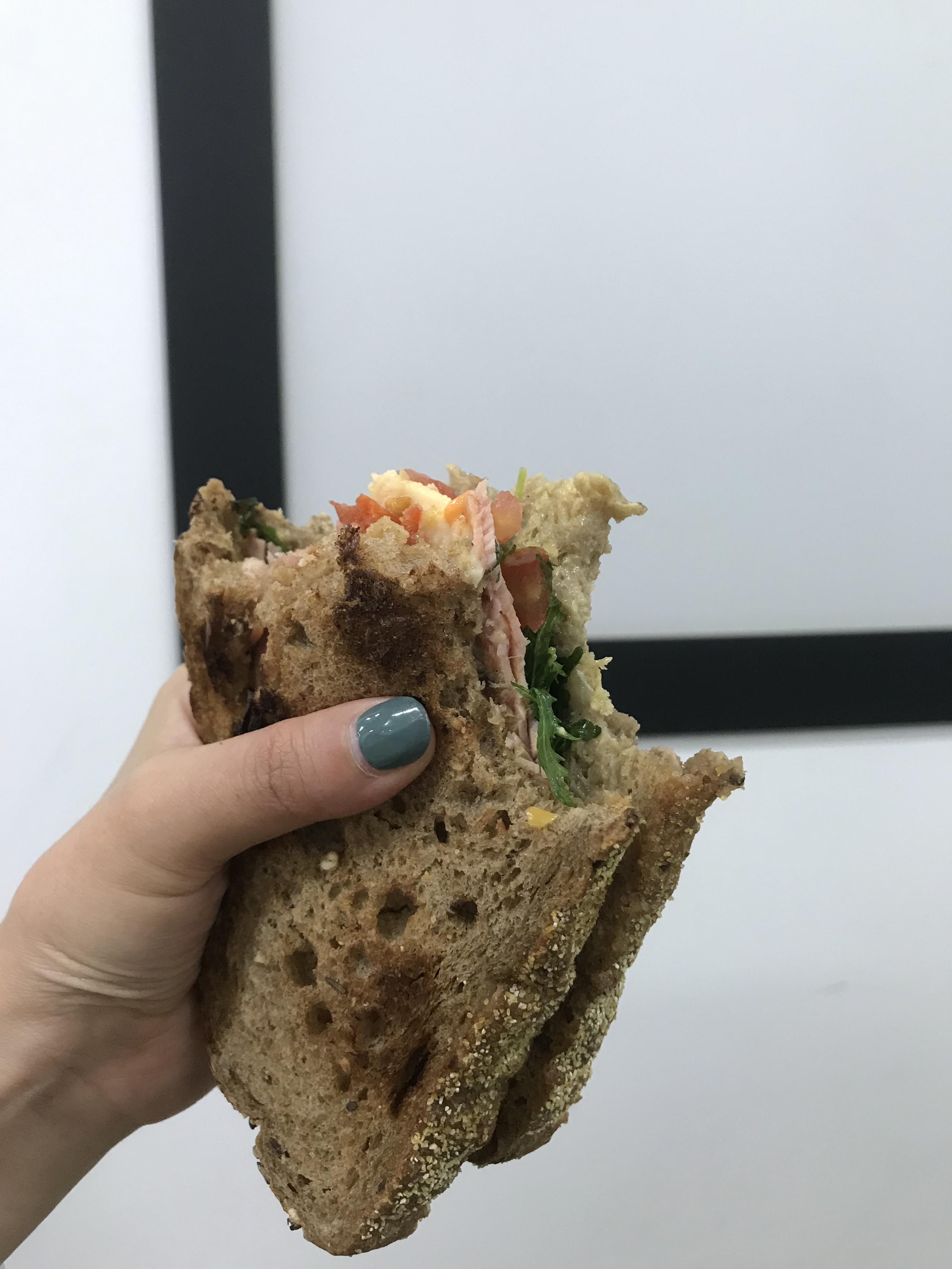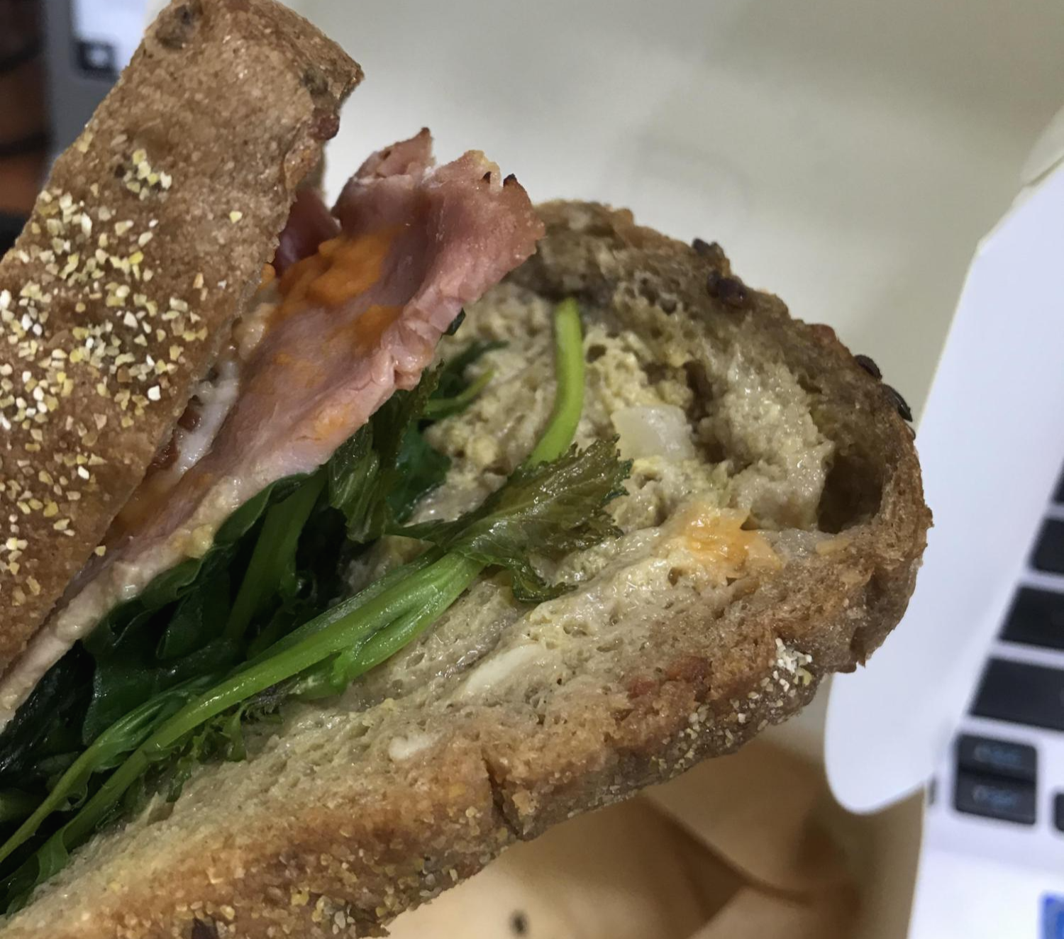 큼직한 허니스모크햄이 들어있네요~그리고 루꼴라, 고소하고 짭쪼름한 마리보 치즈, 매콤한 레드페퍼, 머스터드 소스가 발라져 있었어요. 뭔가 평범한듯 하지만 이 조합이 저는 너무 좋았네요.