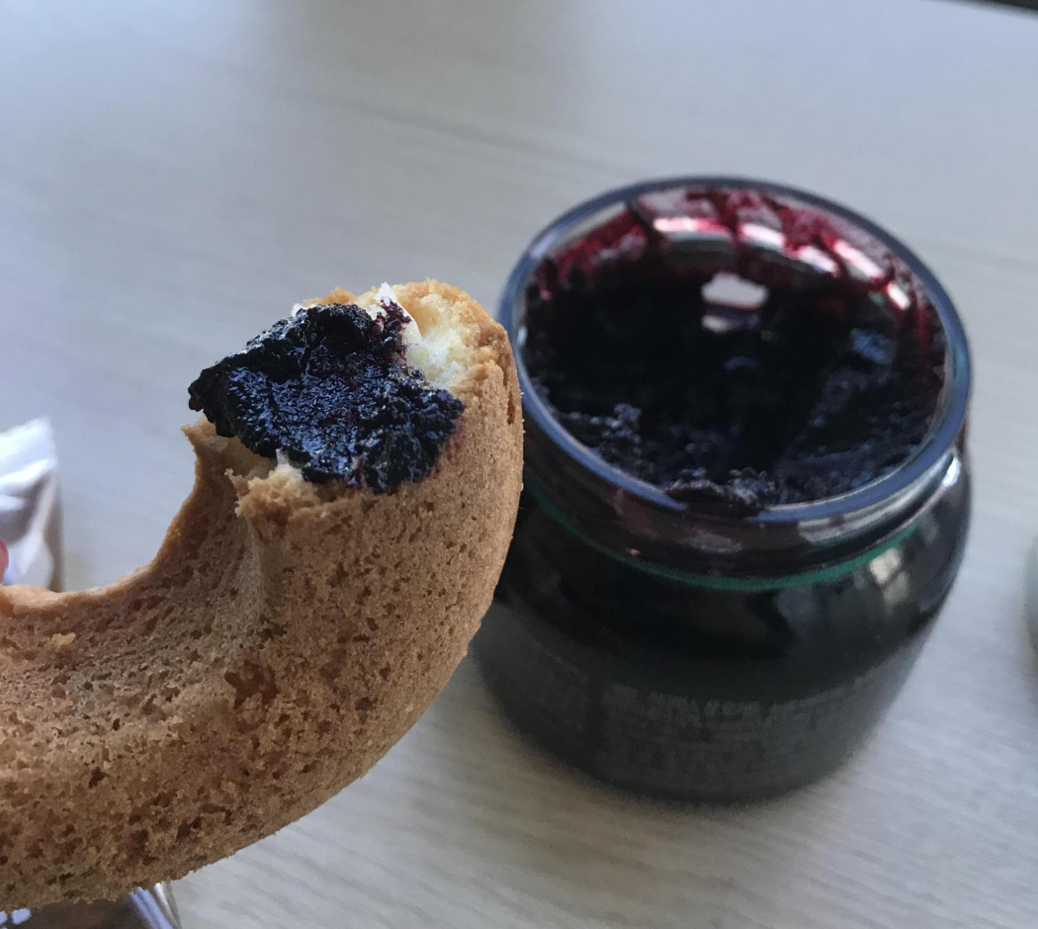 따끈한 아메리카노와 함께 한입 먹어보았는데요, 세상에...너무나 찰떡인거 있죠? 오븐에 구워서 실제로 식감은 부드럽더라구요. 포슬포슬한 도넛이 아메리카노를 만나 입안에서 스르르 녹았어요. 그리고 많이 달지 않더라구요. 새콤달콤한 쨈과 함께 먹어도 잘 어울리겠다 싶어, 이렇게도 먹어보았답니다. 홈메이드 아로니아쨈과 함께요.