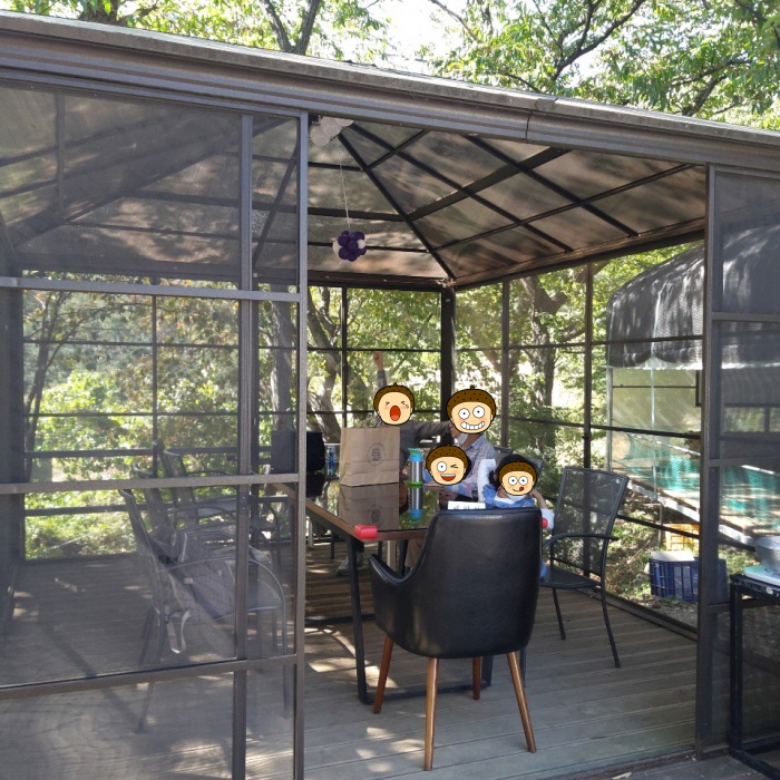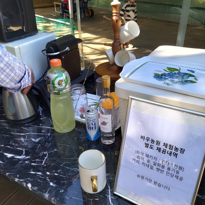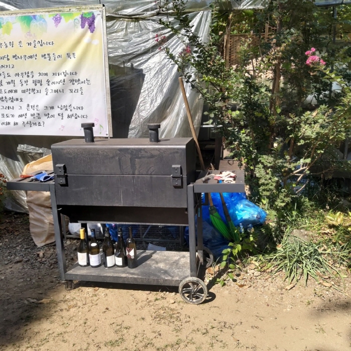 고기굽는 장비를 대여해주시고, 햇반에 커피(캡슐커피 준비해놓으셨더라구요)까지 제공해주시니, 이건 그냥 서비스로 해주시는 거구나 싶었어요. 저는 농장이라고 해서 이렇게 편안하게 앉아있고 쉴 수 있는 곳이 마련되어 있을 걸 예상 못했는데, 가족들끼리 야외에서 편안히 고기 구워먹고 갓 따온 신선한 포도를 후식으로 먹으며 예쁜 가을 경치를 구경하는 게 가능합니다. ㅎㅎ