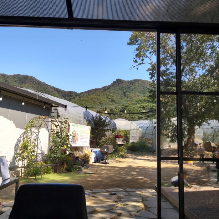 어릴 적 여름방학 때 외할머니, 외할아버지 댁에 놀러가면 나무와 바람과 햇살과 소박한 꽃들이 어우러져 있던 그 풍경이 어린 나이에도 참 좋았었는데요, 바우농장에 들어서면서 그때와 비슷한 느낌이 들었어요.