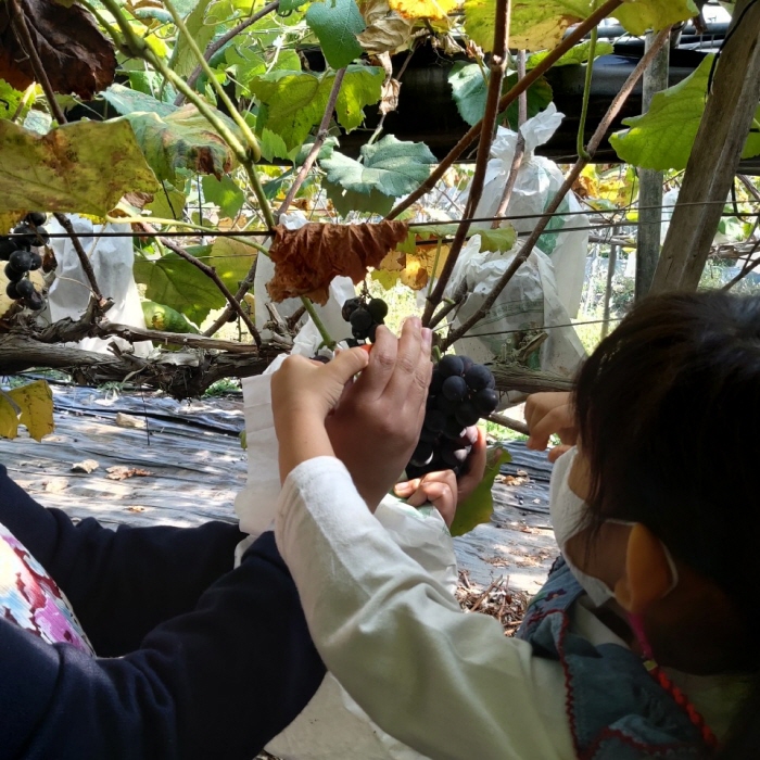 사실 캠벨포도 12송이 + 샤인머스켓 2kg 따는 게 얼마나 오래 걸리겠어요? 금방 다 딸 수 있는데요,^^ 따는 양이나 시간보다는 직접 따는 경험 그 자체, 그리고 포도나무가 빽빽하게 들어선 포도밭에 선 시각적, 물리적 경험, 내가 직접 딴 포도를 가족과 함께 나누어 먹는 경험.. 그런 것들이 아이들에겐 의미있는 경험이고 신나는 놀이고 그랬던 것 같아요.