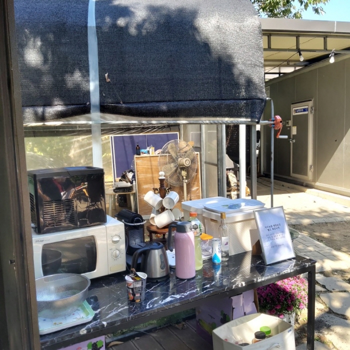 저는 간단한 먹을거리를 준비해가서 먹었는데, 미리 예약하면 고기를 구워먹을 수도 있어요! 1인당 5,000원의 추가비용을 내고 바베큐패키지를 예약하는 건데요, 그럼 야외에서 고기를 구워 먹으며 캠핑 느낌도 낼 수 있겠더라고요. 저는 문의했을 때 바베큐 예약이 마감 되어 아쉽게 못했지만 다음 번엔 꼭 바베큐 패키지를 해야겠다고 생각했어요.