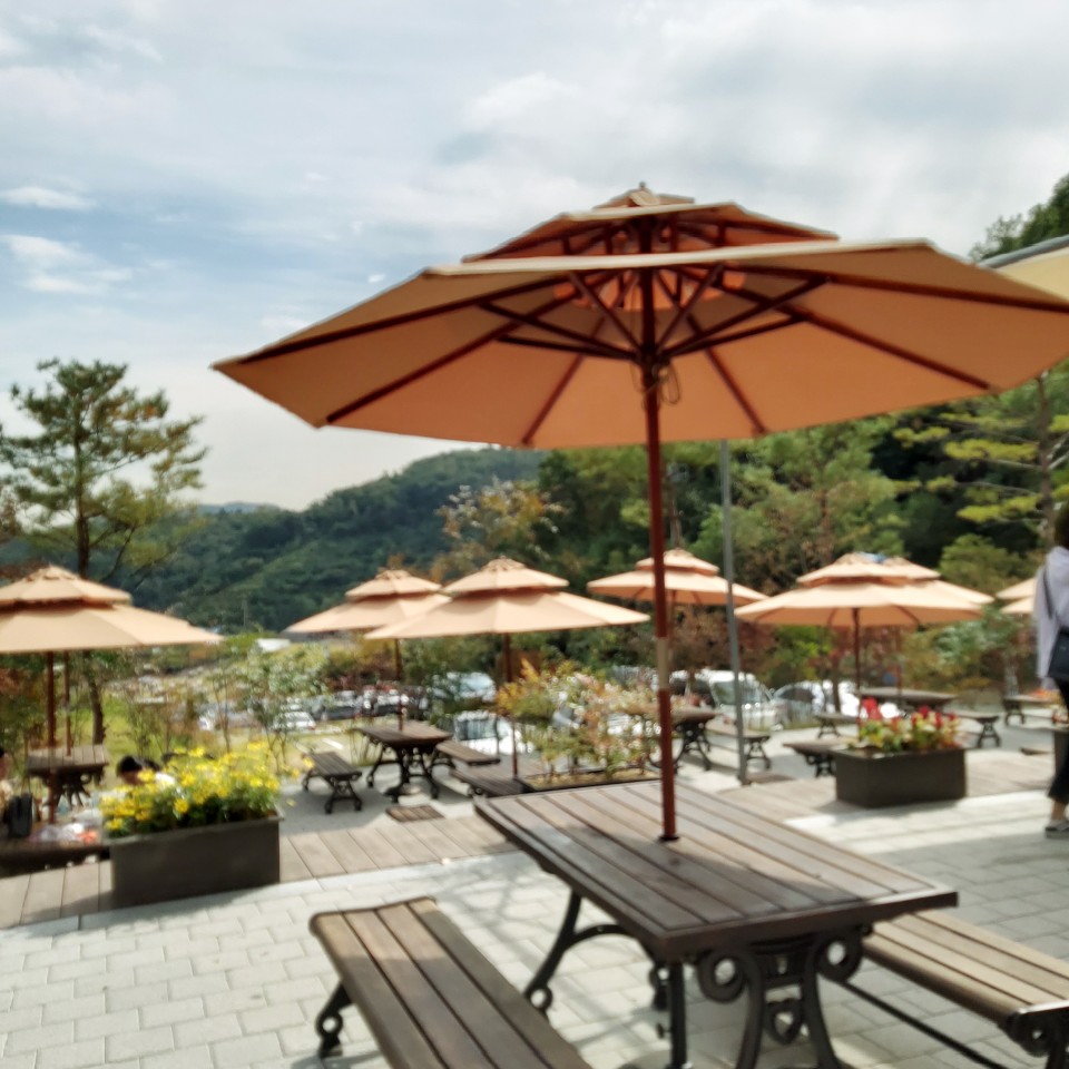 그리고 화담숲 산책로를 따라 이동을 하면 마지막 코스에 주막과 카페가 있어요. 결론은- 화담숲 내에서는 물과 음료 외에 뭔가를 먹지 않는 게 좋다,는 것!^^ 아이들 과자 정도는 괜찮고, 사실 곳곳에서 과일이나 간단한 간식을 꺼내 드시는 걸 보기도 했는데요, 규칙은 가급적 지켜야죠. 관리하는 분들 눈 피해서 야금야금 먹는다고 그거 얼마나 맛있겠어요. 자연보호를 위해 먹지 말고 정해진 곳에서 먹는 것으로!