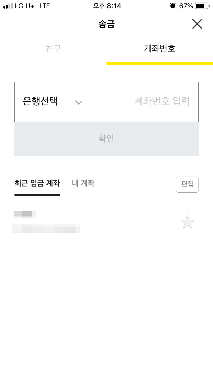 - 등록된 친구 목록에서 송금할 대상 선택 또는 계좌번호탭 선택