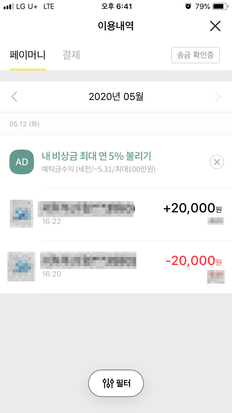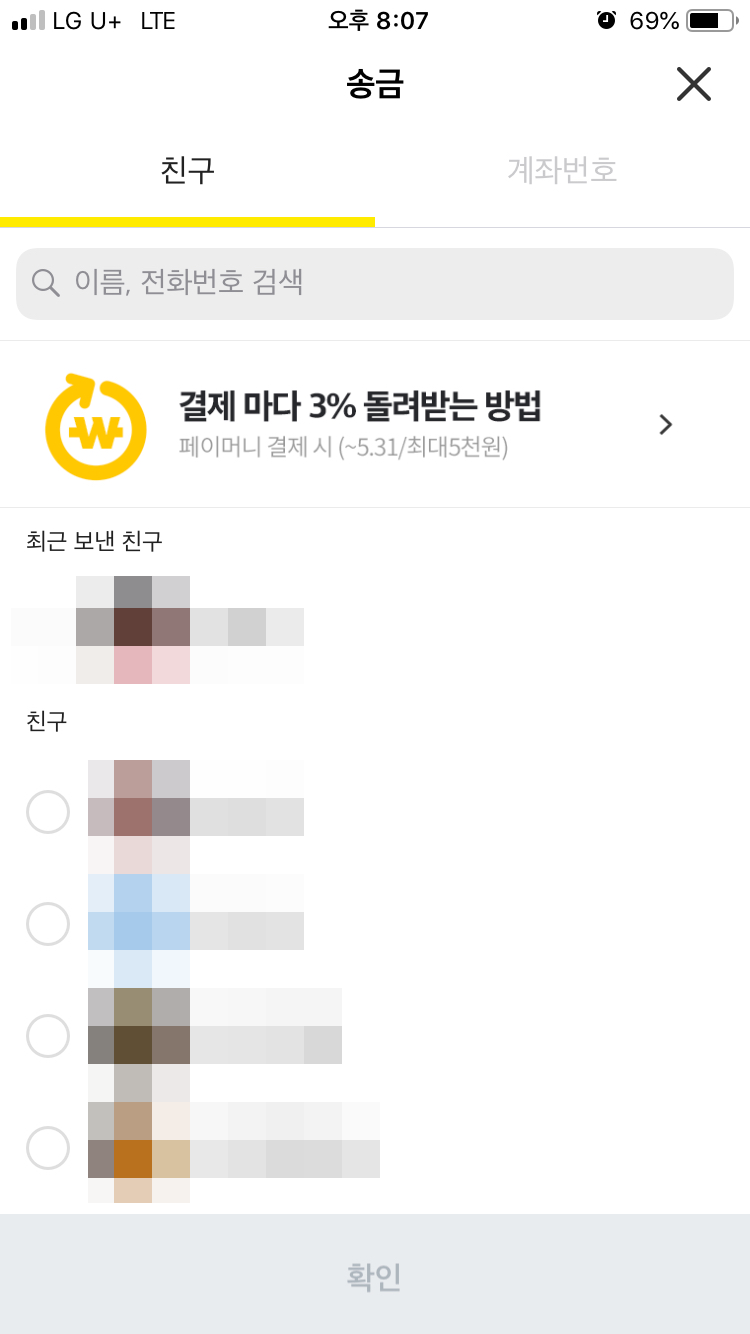 ** 카카오페이로 송금받은 돈받기 :