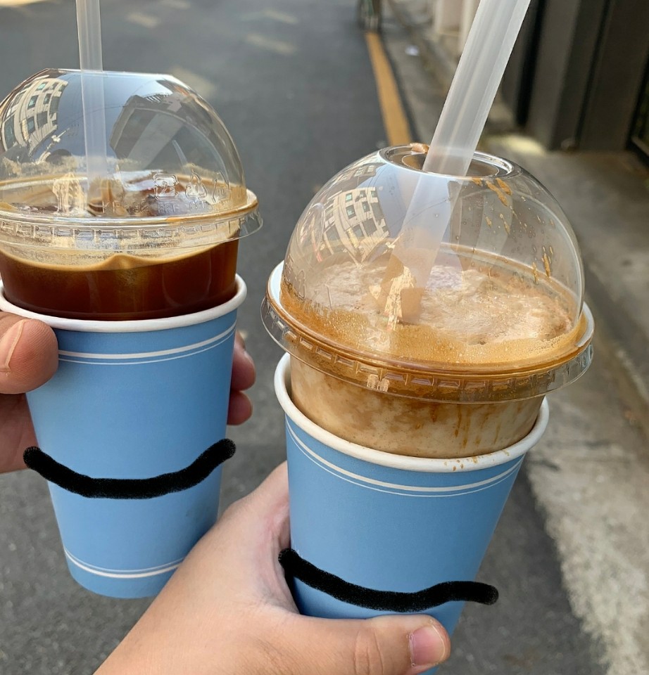 제가 최근 진심으로 '심하다..'고 느꼈던 경우 중 하나는.. 저희 동네 유명한 카페의 커피컵이에요. 일회용 투명 플라스틱 컵에 담아주는 거야 테이크아웃을 할 때 당연한 거라 치더라도, 그 투명 컵을 다시 일회용 종이컵에 담아주더라구요?