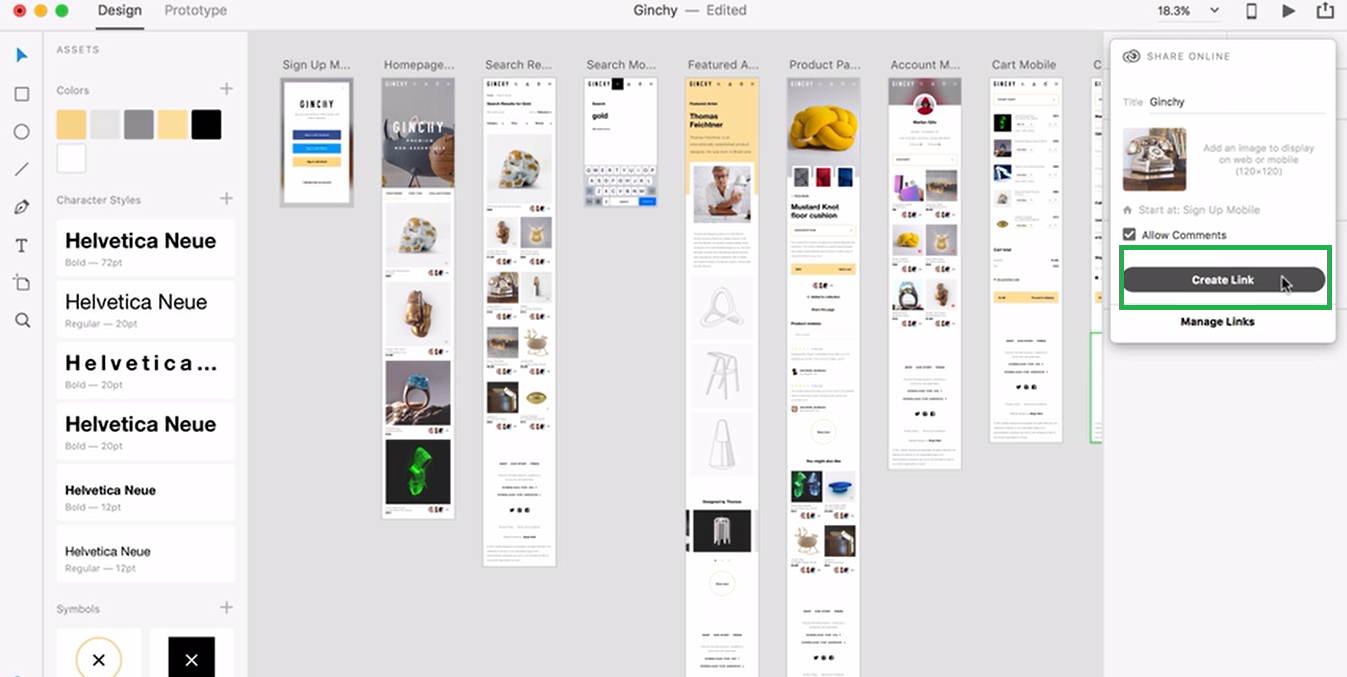 미리보기 창은 디자인/프로토타입 모드에서 모두 이용 가능한데요. 프로토타입 모드에서 작업하는 동안 어떤 레이어든 선택해 모든 지점에서 신속하게 해당 디자인을 찾아 업데이트 수정할 수 있으며, 즉시 반영됩니다.