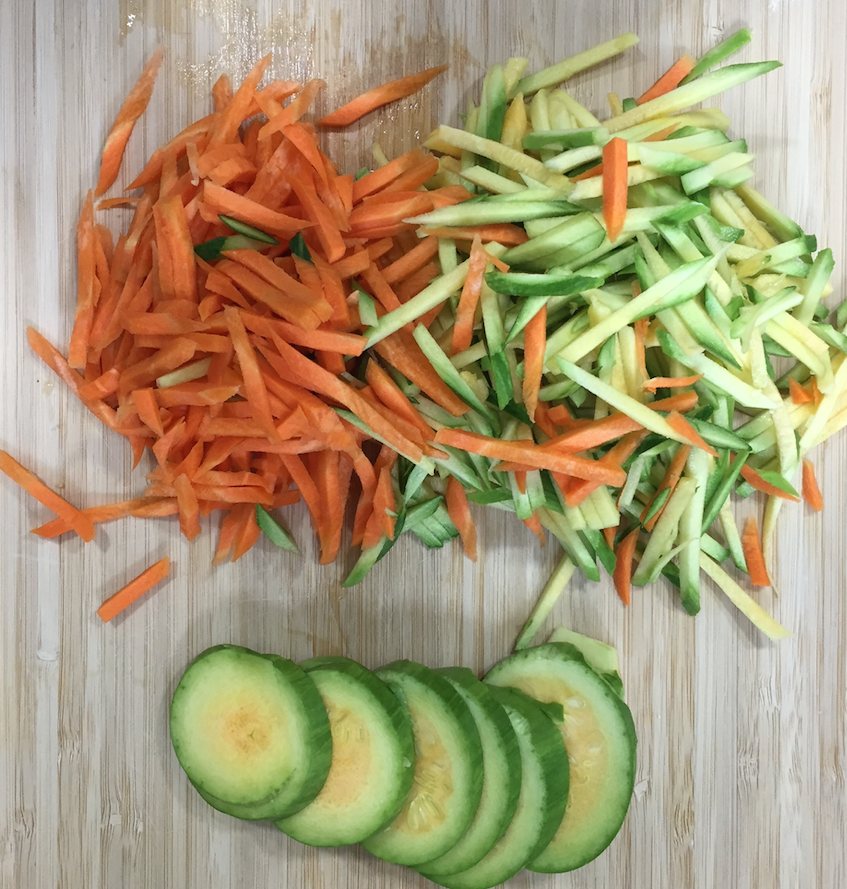 이것만으로도 충분히 김밥은 쌀 수 있지만 저는 당근하고 호박을 볶아서 넣기로 했습니다. 그리고 계란 3개를 채썰어서 넣구요. 밥은 흰쌀밥이 가장 편하고 김밥을 쌌을 때 부드럽고 좋은데요, 잡곡을 섞은 밥을 넣어서 해보려고 해요. 식감이 부드럽지는 않겠으나 건강해지는 느낌적 느낌으로.^^