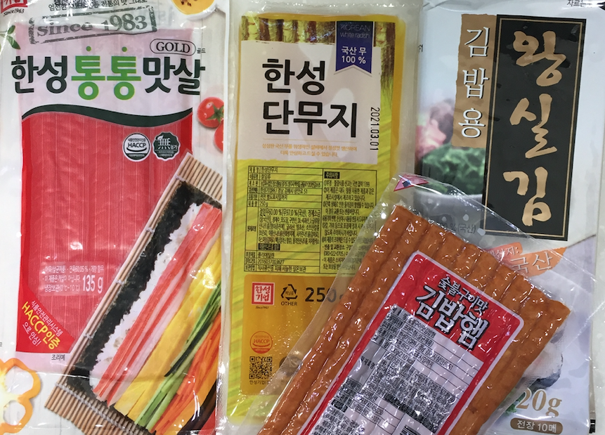 마트에서 파는 김밥재료도 브랜드마다 여러가지가 나오는 것 같아요. 사실 김밥용 키트를 사는 것보다 따로따로 맛있는 재료를 사오면 더 좋은데요, 재료를 좀 많이 사게 되고 식구들이 많지 않으면 일부만 쓰고 나머지를 또 따로 보관해두는 것이 싫어서 한번에 다 만들 수 있도록 하려고 해요. (사실 그럼에도 불구하고 다 못싸고 나머지 재료는 따로 먹어버렸..)
