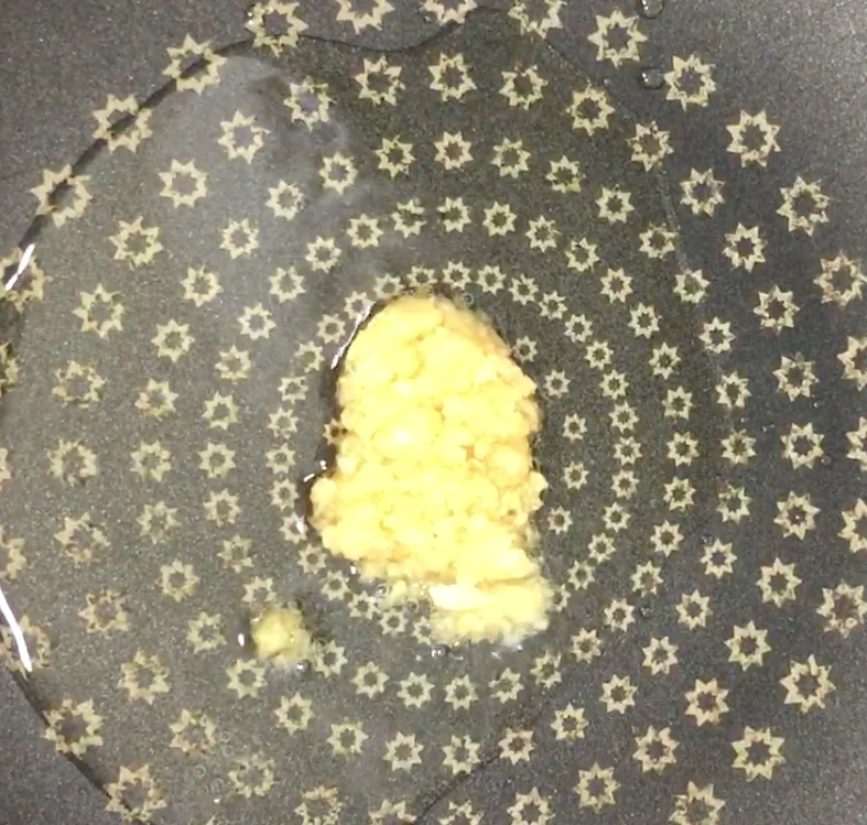 - 팬에 기름을 두르고 마늘 반스푼을 넣어 마늘 기름을 내다가