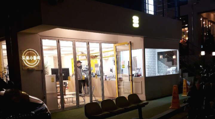 까만 밤이라, 노랑노랑한 가게 로고가 더 눈에 띄었는데요.