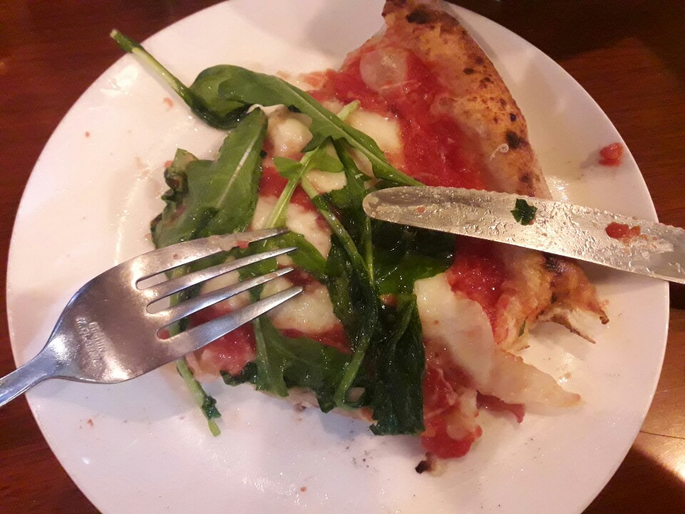 화덕의 열기가 느껴지는 피자 대령이오! 거뭇거뭇한 흔적이 있지만 나무 장작의 향이 그대로 느껴지는 것 같고 부드럽고 쫄깃해서 좋았어요. 피자의 빨강, 초록, 흰색은 이탈리아 국기를 상징한다네요. 올곧게(..) 미국식 피자와 비교를 거부하는 이탈리안 피자랄까요.