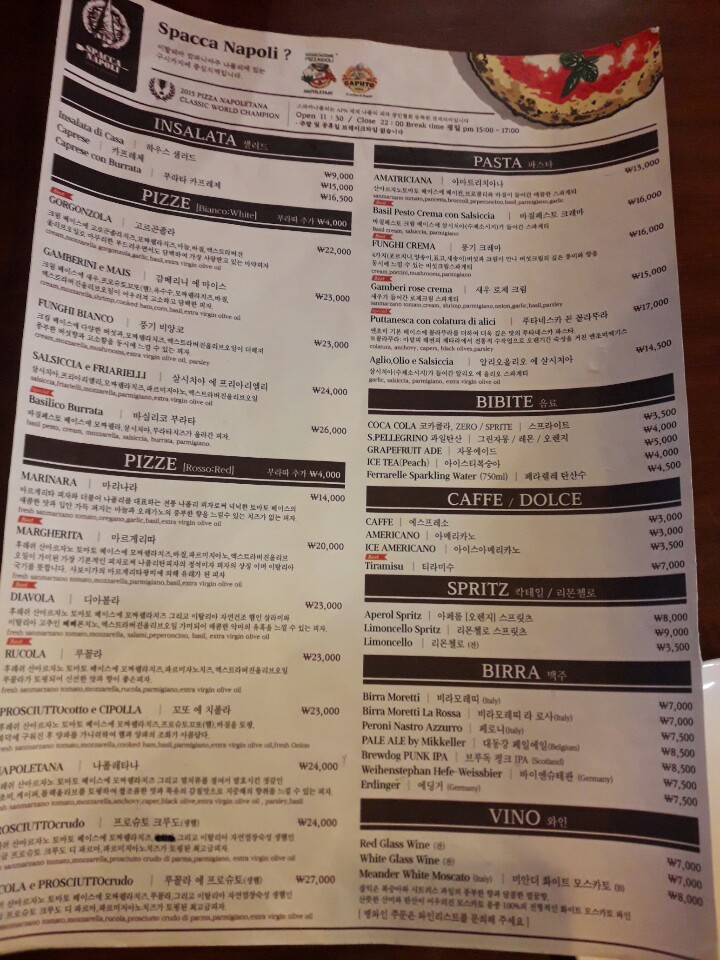 스파카 나폴리 메뉴/가격