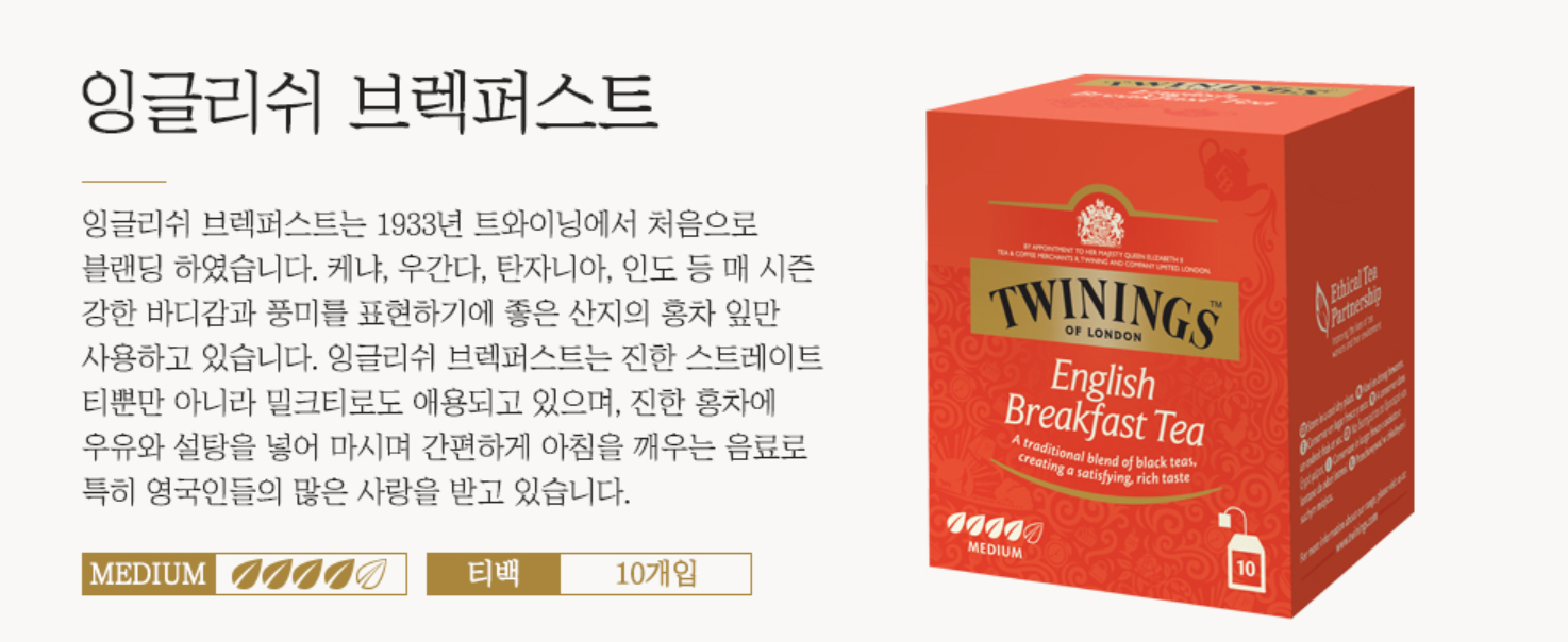 트와이닝 홍차는 1837년부터 영국 왕실에 납품(Royal warrant)되어, "빅토리아 여왕이 마시는 홍차!★"라고 홍보되며 전세계로 수출되고 있습니다. 한국에서도 티백으로 쉽게 즐길 수 있고요.