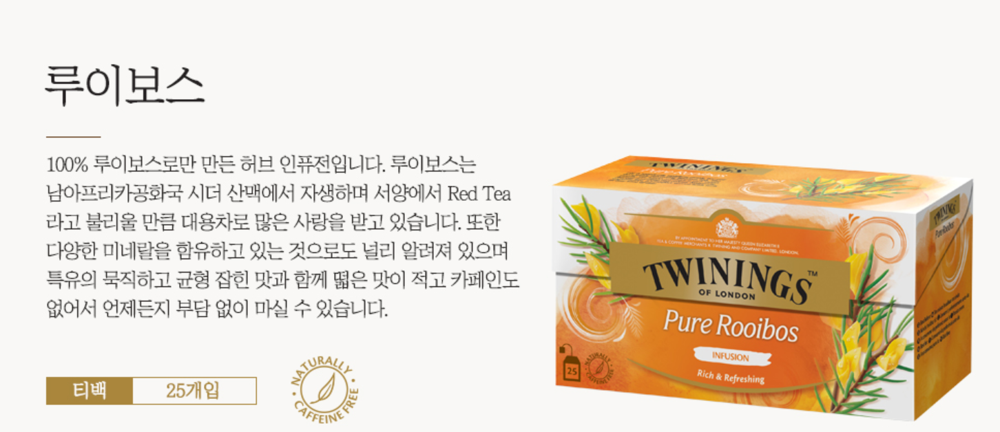+그래서 카페인 걱정 없는 트와이닝 '허브차'도 있습니다! 트와이닝 루이보스/레몬티/스트로베리&망고 등이 있는데, 저는 개인적으로 오후 나른할 때 아래 트와이닝 페퍼민트 허브차 티백 효과를 톡톡히 보고 있습니다. 아주 개운해요! :)