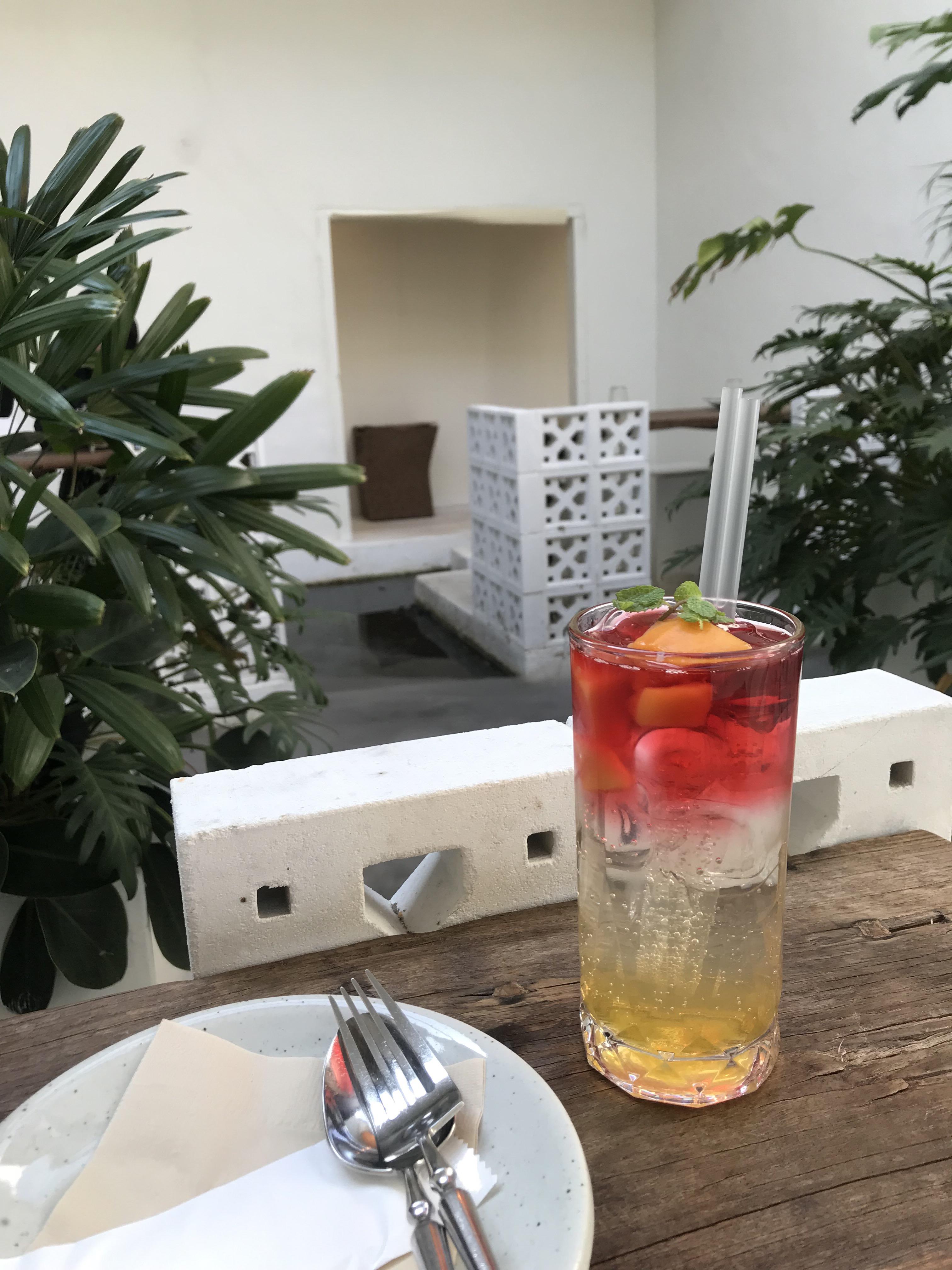 음료는 화려한 비주얼 비해 생각보다 망고가 많이 들어있지 않아(원래는 망고가 잔뜩 들어간 진득한 음료를 기대했다는..) 조금 실망했지만, 나중엔 부드러운 푸팟퐁커리 & 팟타이와 잘 어우러져 맛있게 먹었어요. 소다가 들어서 상큼하게 잘 어울렸답니다.