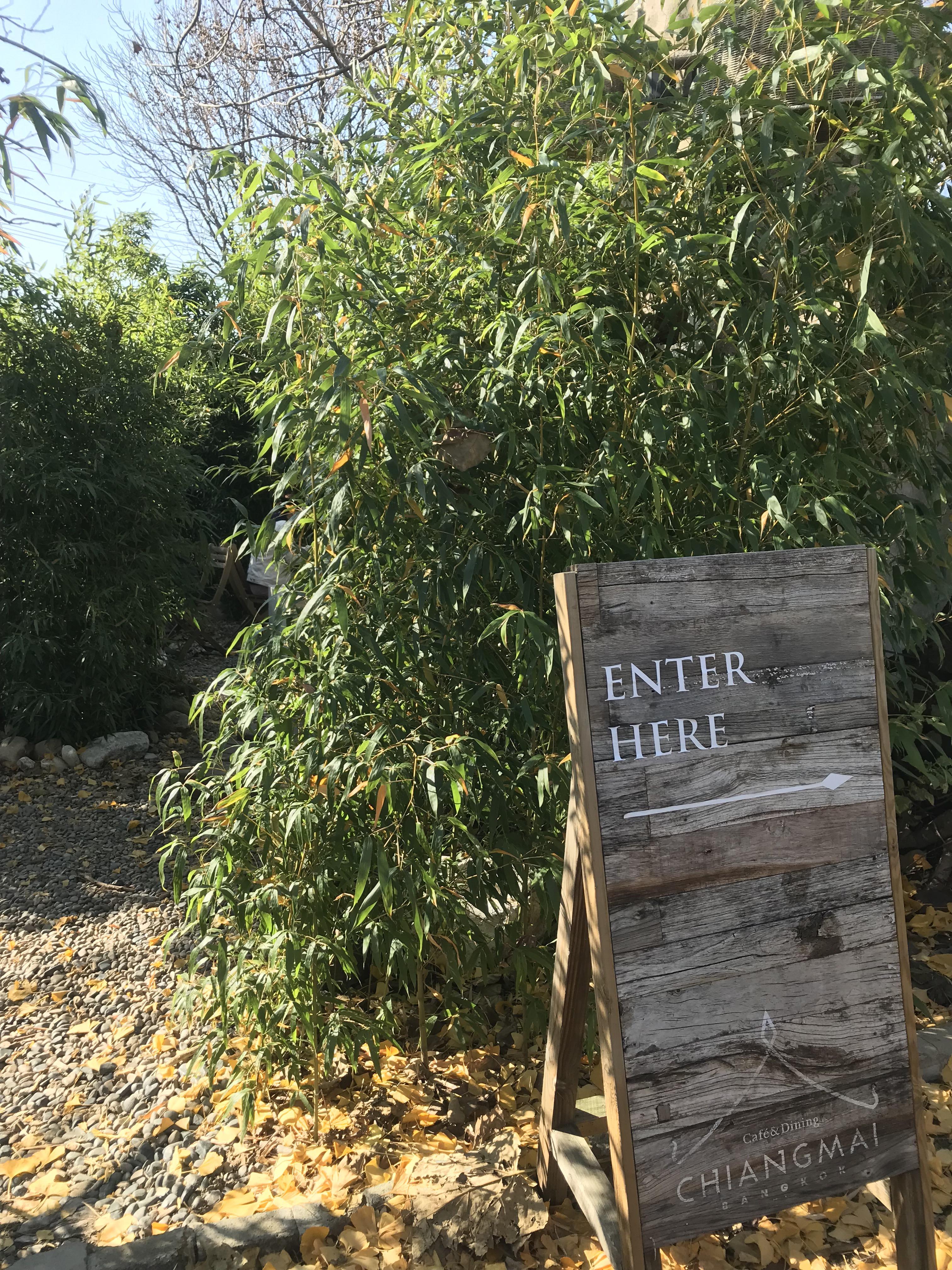 치앙마이방콕에 들어서자 마자 코로나로 답답했던 가슴이 뻥 뚫리는 느낌을 받았어요. 사진한번 보실래요? 초록초록한 식물들로 가득찬 정원을 지나야 안쪽 식당건물로 들어갈 수 있는데, 건물까지 이어지는 길이 너무 나도 비현실적이었답니다.