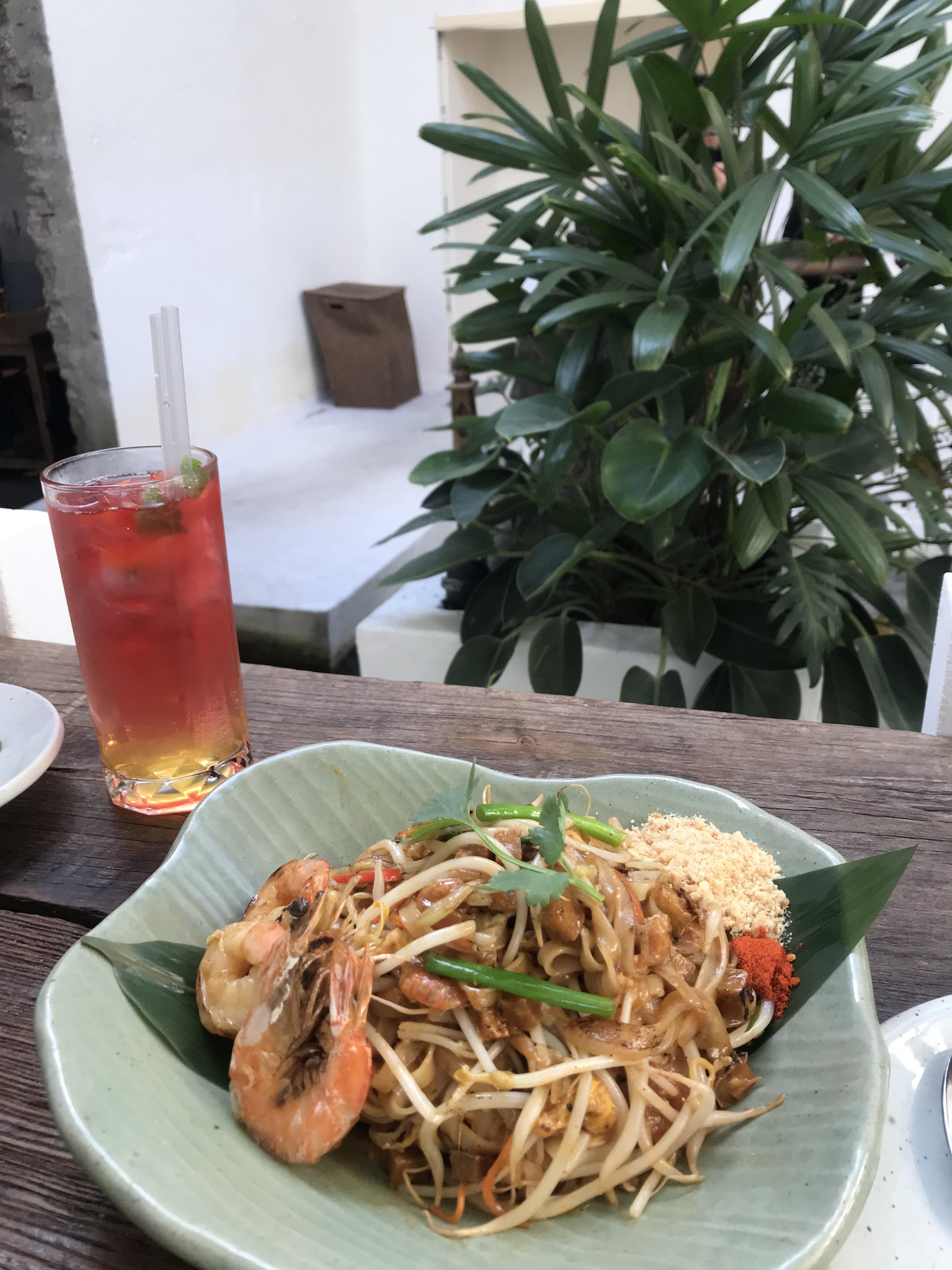 저희가 주문한 메뉴는 망고음료와 푸팟퐁커리, 쉬림프 팟타이였어요. 푸팟퐁 커리의 경우 조리시간이 조금 더 걸린다고 하셨는데, 15분정도로 그리 길게 느껴지진 않았네요. 먼저 음료가 서빙되고 곧이어 팟타이가 나왔답니다.