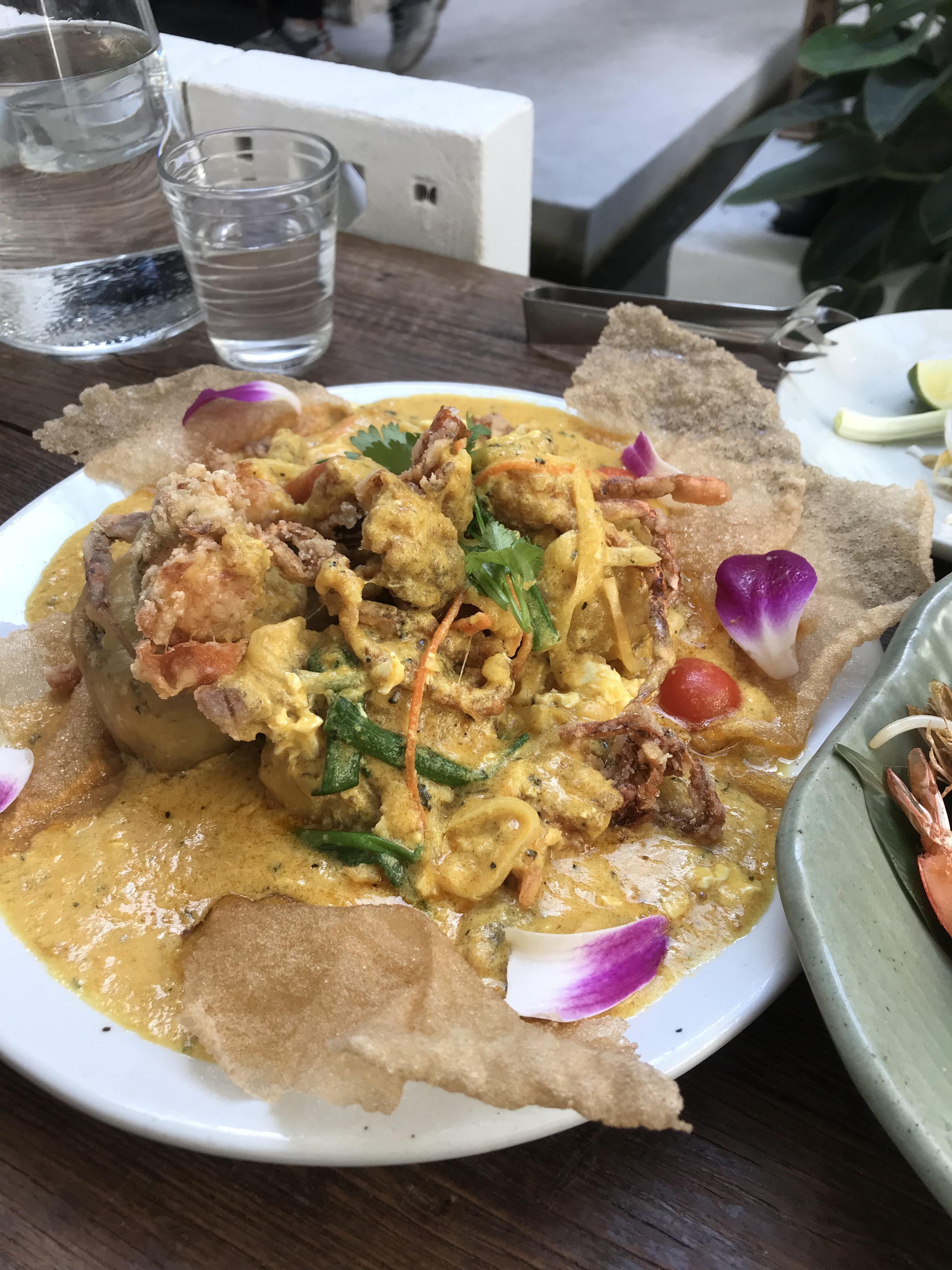 마지막으로 푸팟퐁 커리입니다. 푸팟퐁커리는 튀긴 게를 코코넛밀크와 달걀이 들어 부드러운 커리 소스에 볶아 만든 요리인데요, 고소하고 부드러운 맛에 커리향이 은은하게 어우러진 태국의 음식입니다. 치앙마이방콕은 푸팟퐁 커리에 게 대신 소프트크랩쉘을 사용해 누구나 쉽게 즐길 수 있을듯 해요.
