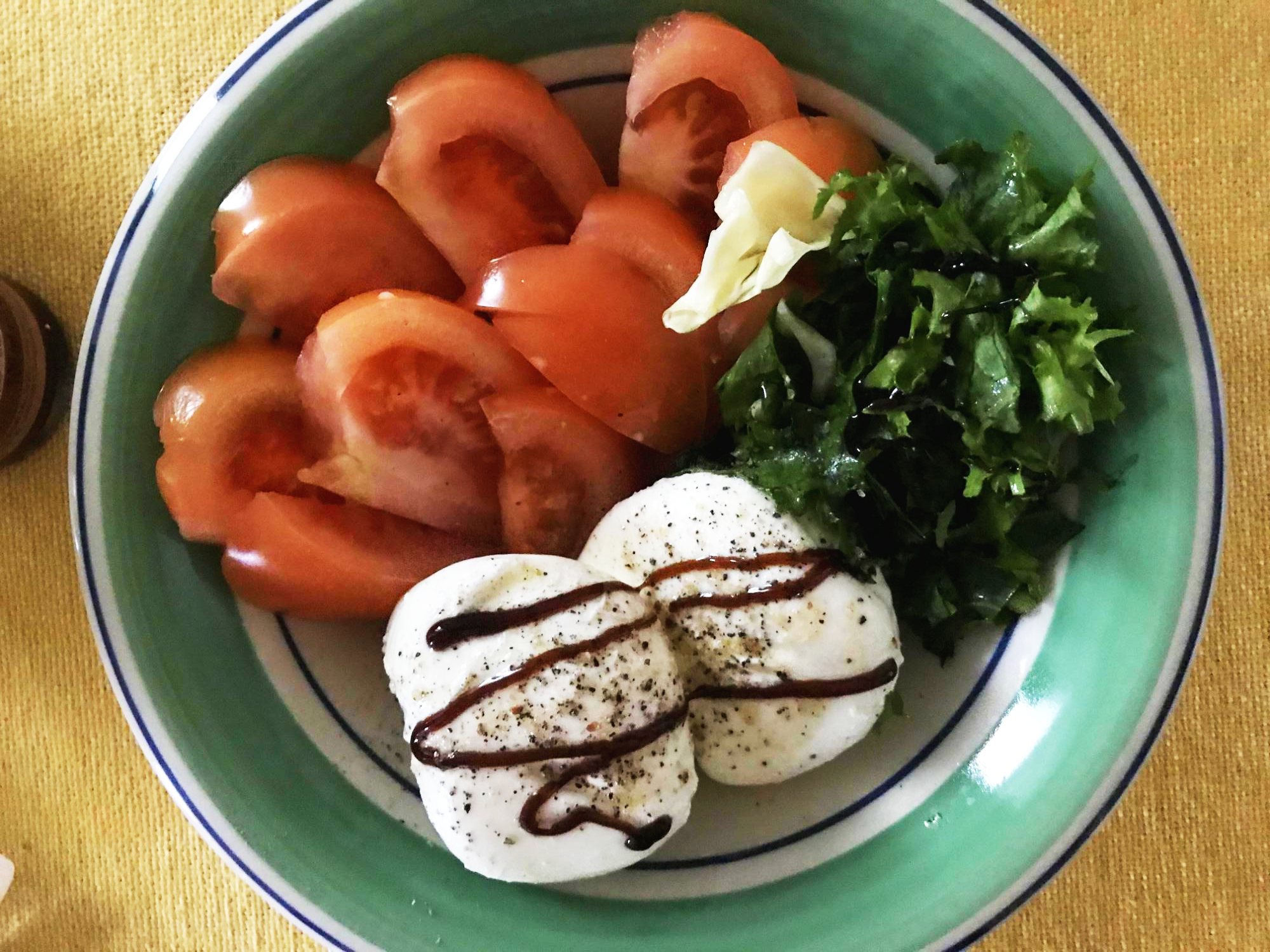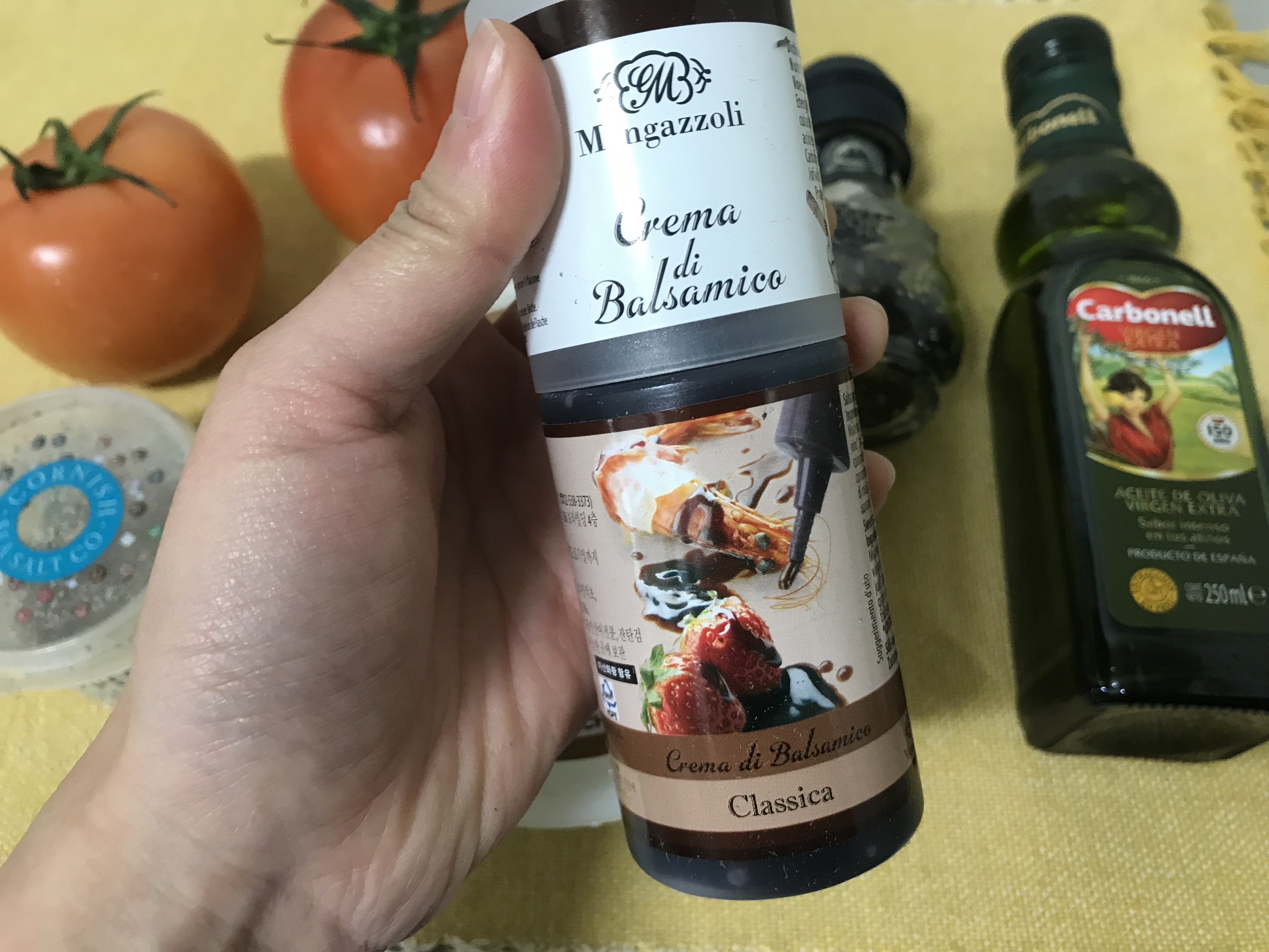 -토마토, 샐러드, 올리브유, 후추, 발사믹크림(발사믹 식초보다 달달한 크림 제품을 추천 드려요), 소금, 레몬