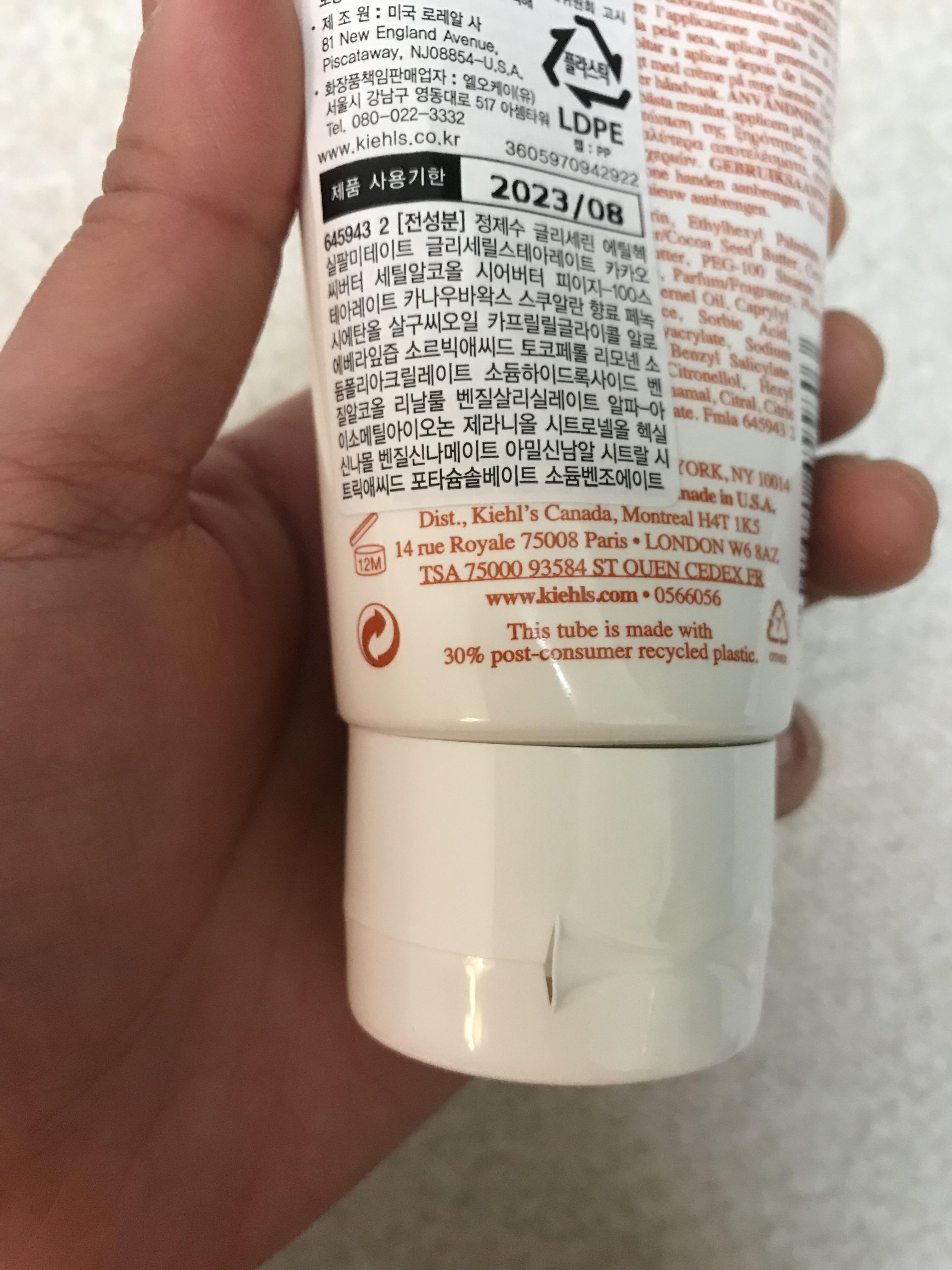 하얀 튜브에 담긴 리칠리 하이드레이팅 핸드크림이에요. 키엘만의 브랜드 이미지를 담은 듯 의약품 패키지 같은 디자인이네요. 사이즈는 75ml로 한 손에 묵직하게 들어가는 사이즈로, 사람마다 차이는 있겠지만, 저에게는 겨울 내내 사용하기 딱 좋은 정도의 양인 것 같아요. 게다가 사용기한도 2023년 8월이라니! 겨울에 다 사용하지 못해도 내년 가을 추워질 때 즈음 다시 꺼내 쓰기 좋겠어요.