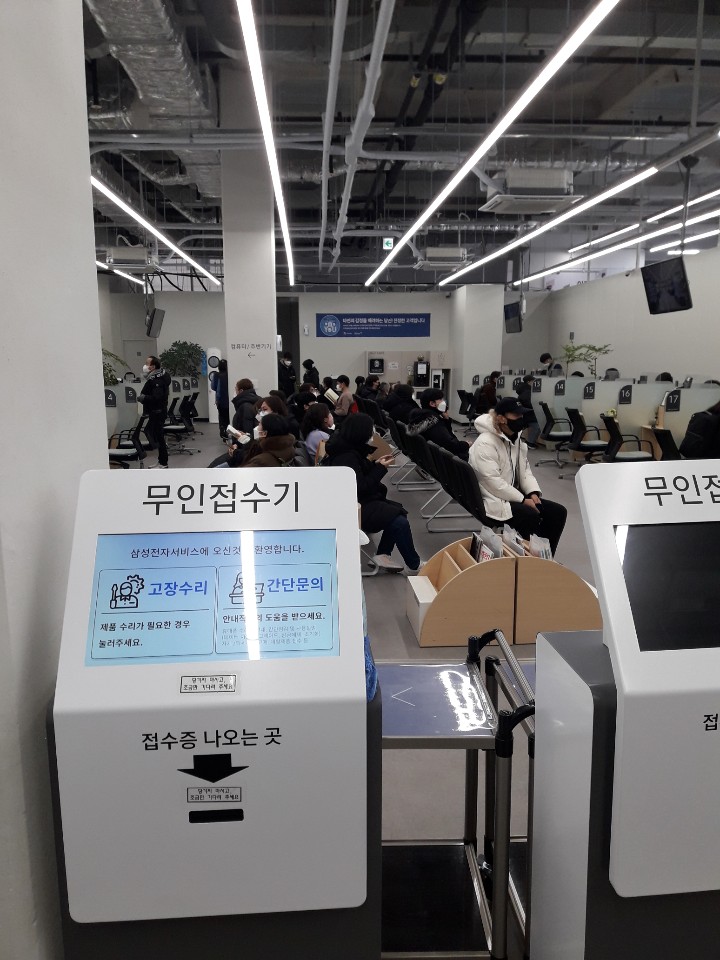 은행처럼 번호표를 받고 잠시 기다렸다가 엔지니어 분을 만날 수 있었습니다. 주 서비스 품목인 휴대폰이 아니여서인지, 저만 따로 뒤쪽 작업하시는 곳으로 따라가서 구경도 할 수 있었어요!☆