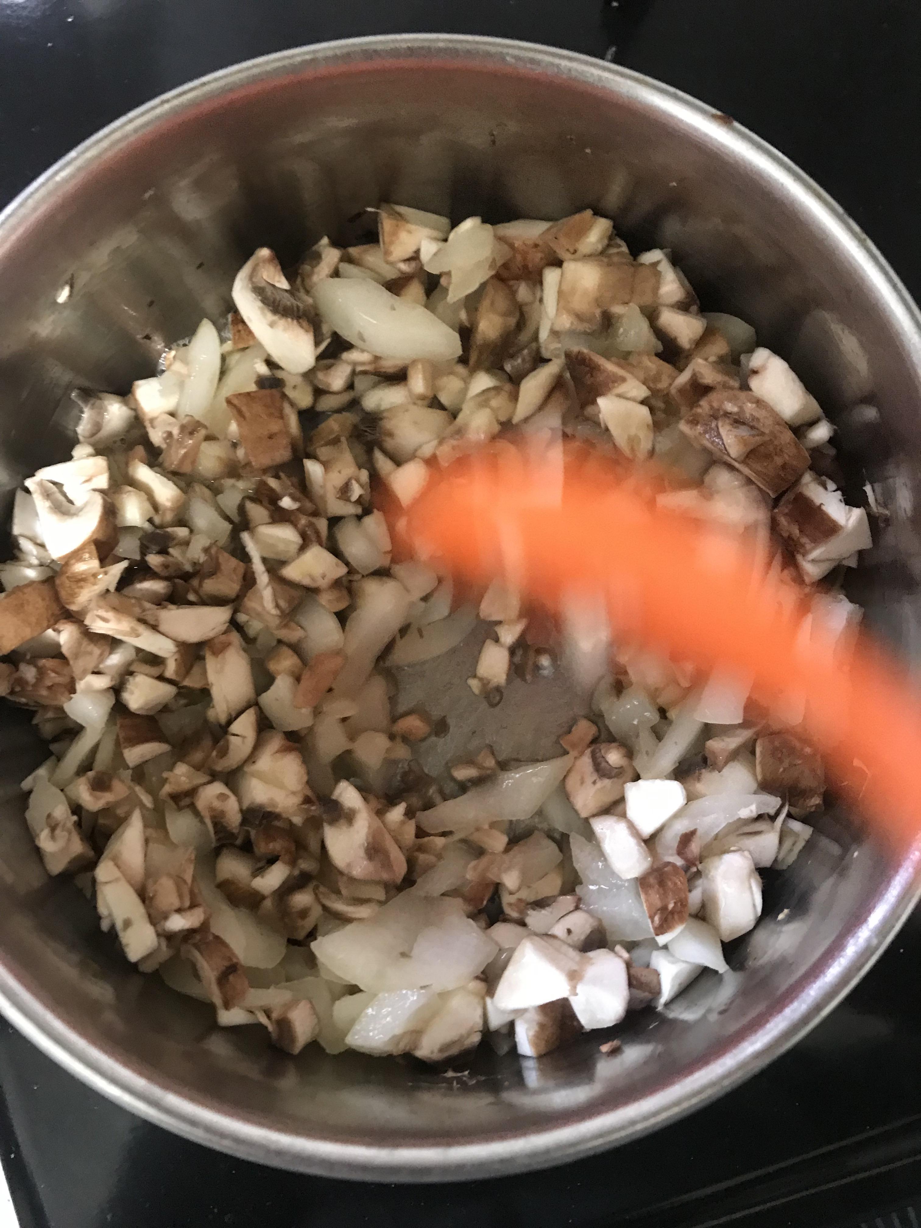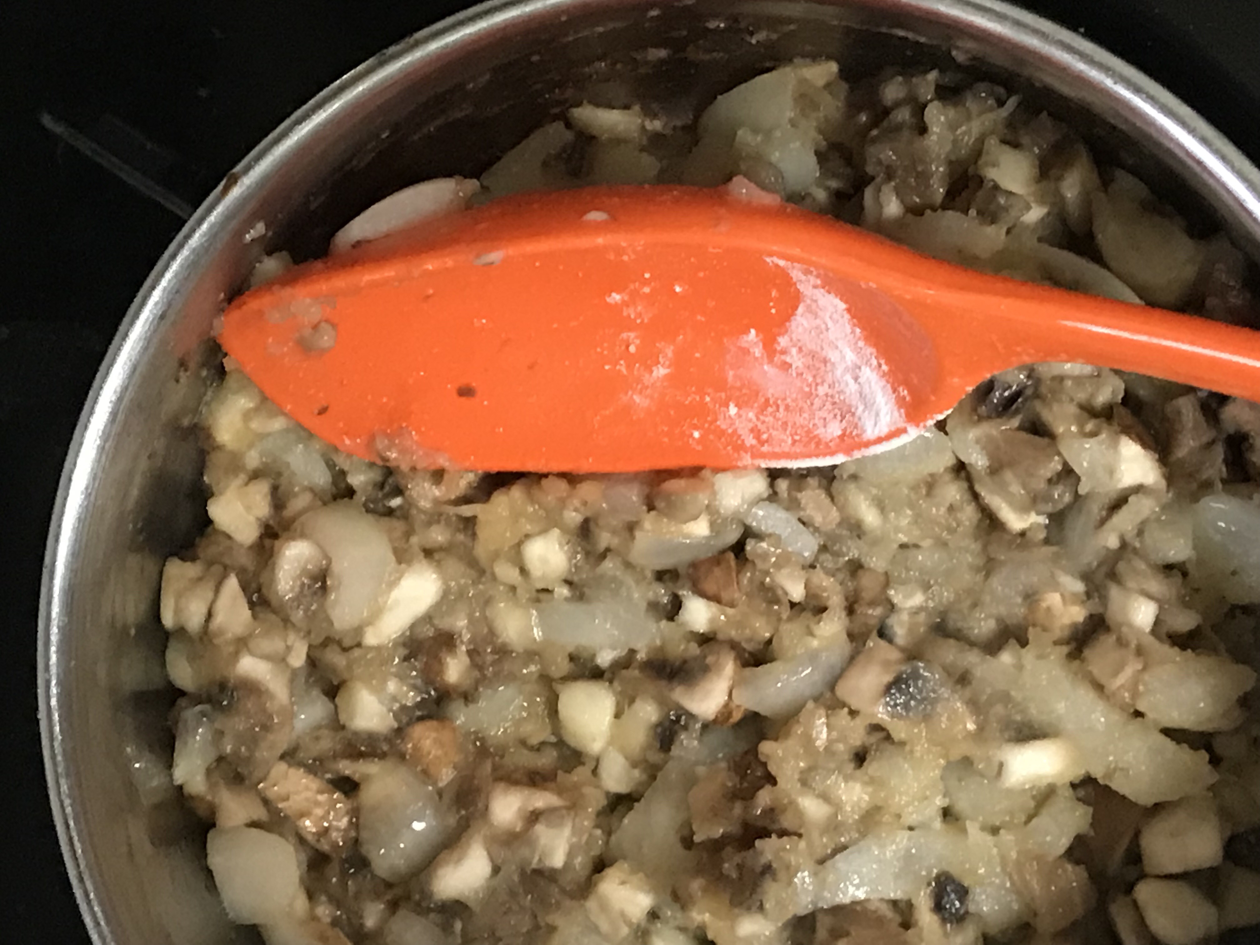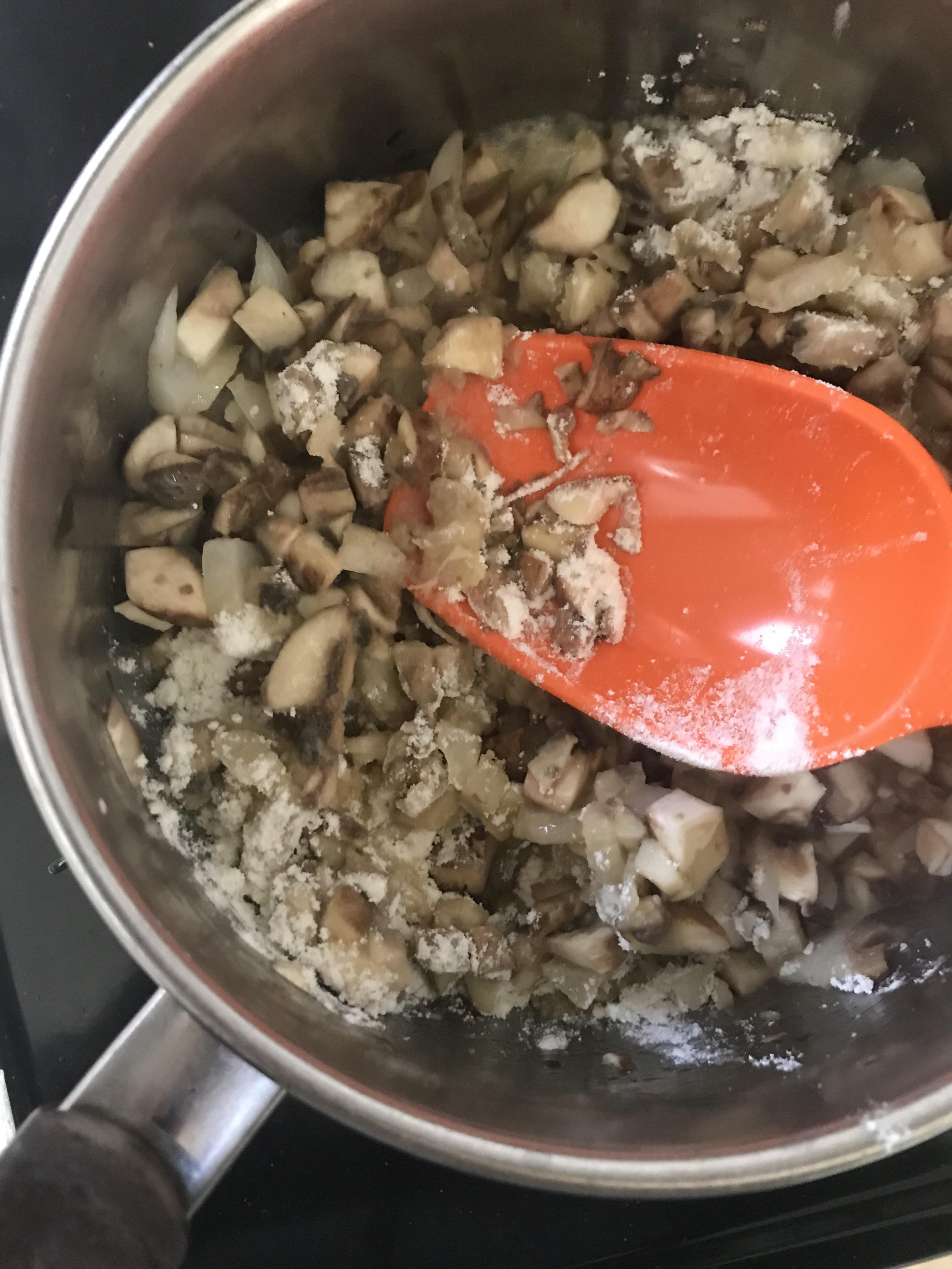 (사진은 양송이&양파-->밀가루 순서로 볶은 모습이에요. 밀가루-->양송이&양파 순서로 진행하시는 걸 추천 드려요)