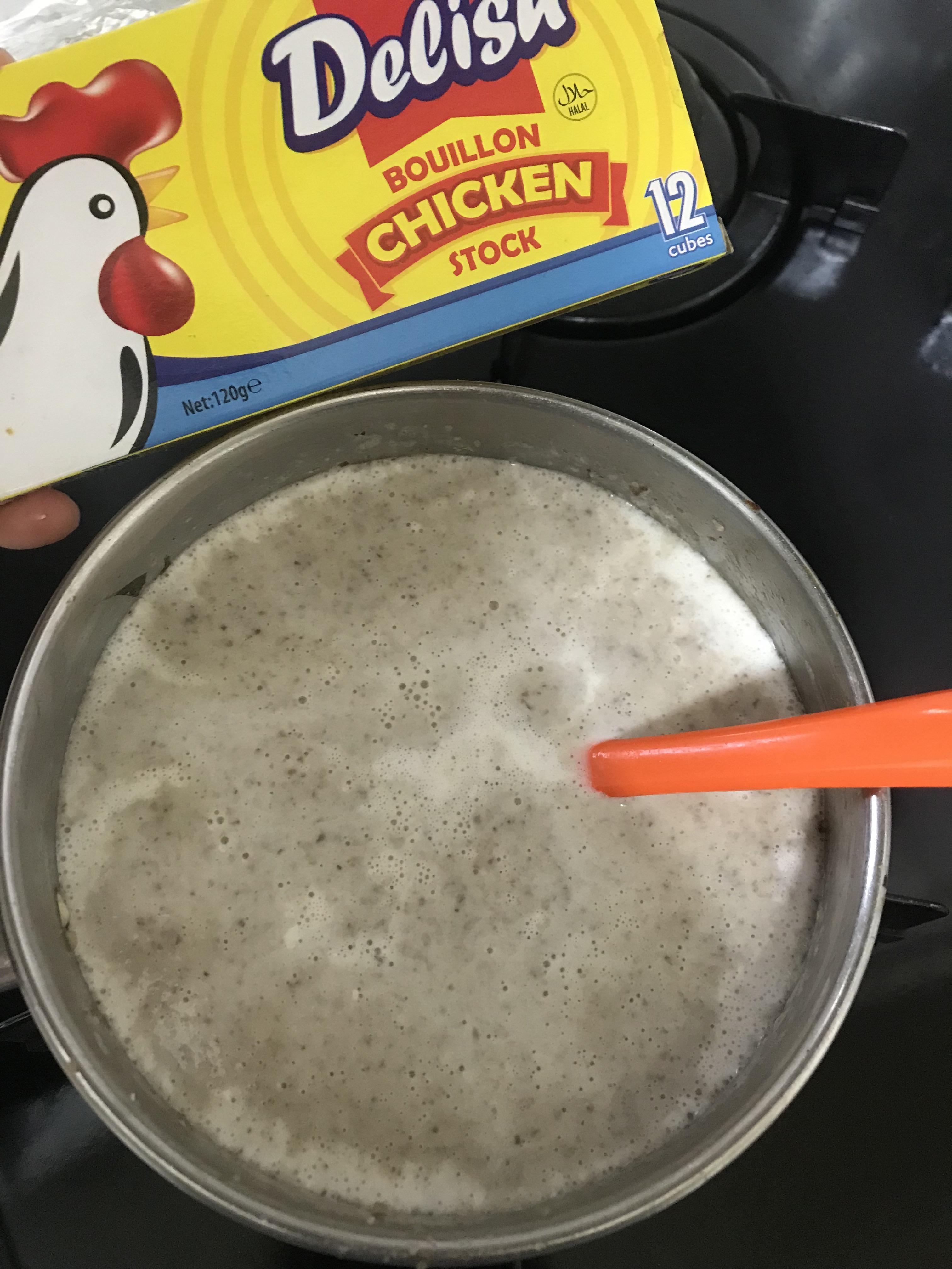 4)생크림 & 치킨스톡 넣고 다시 끓이기