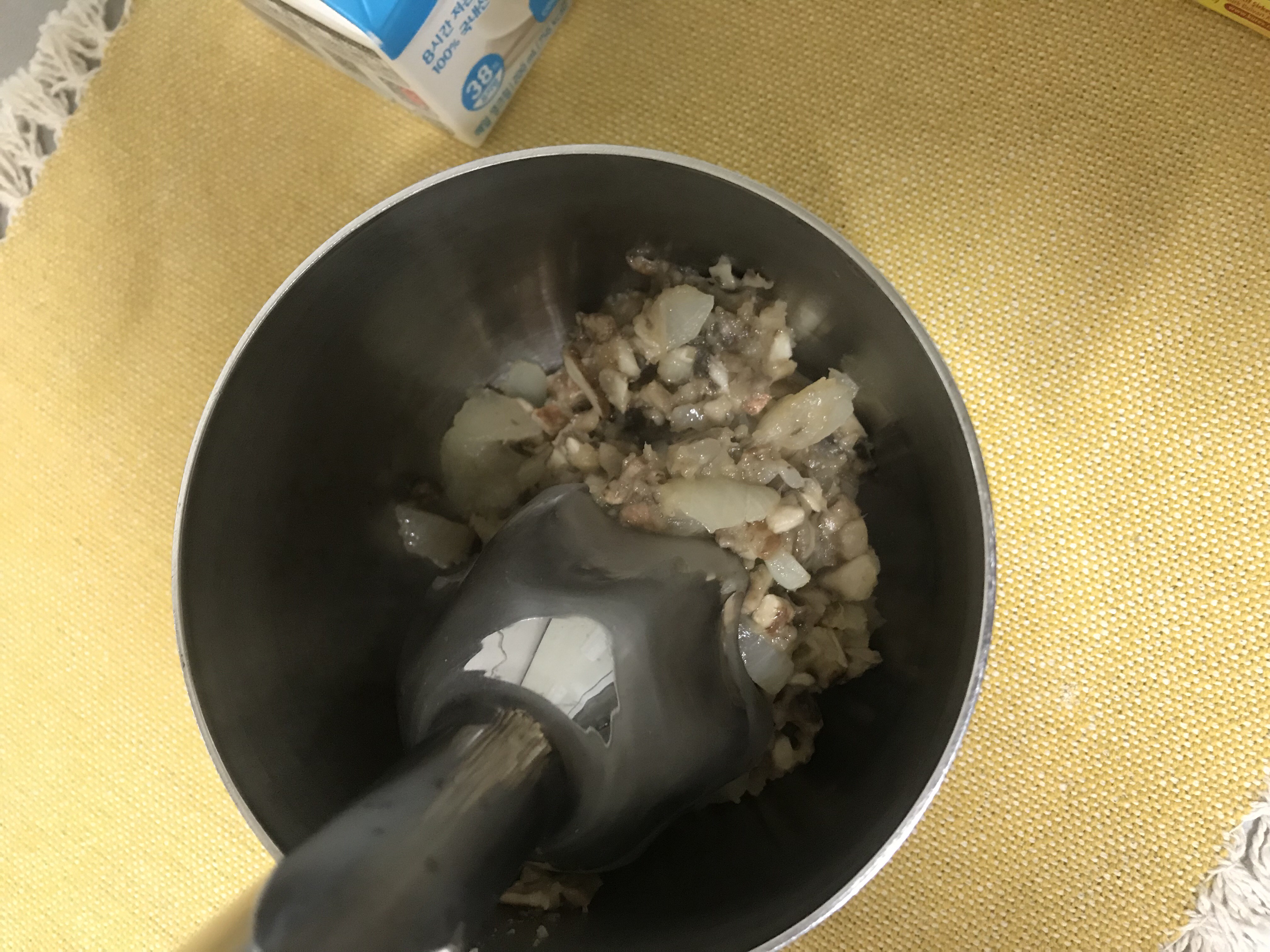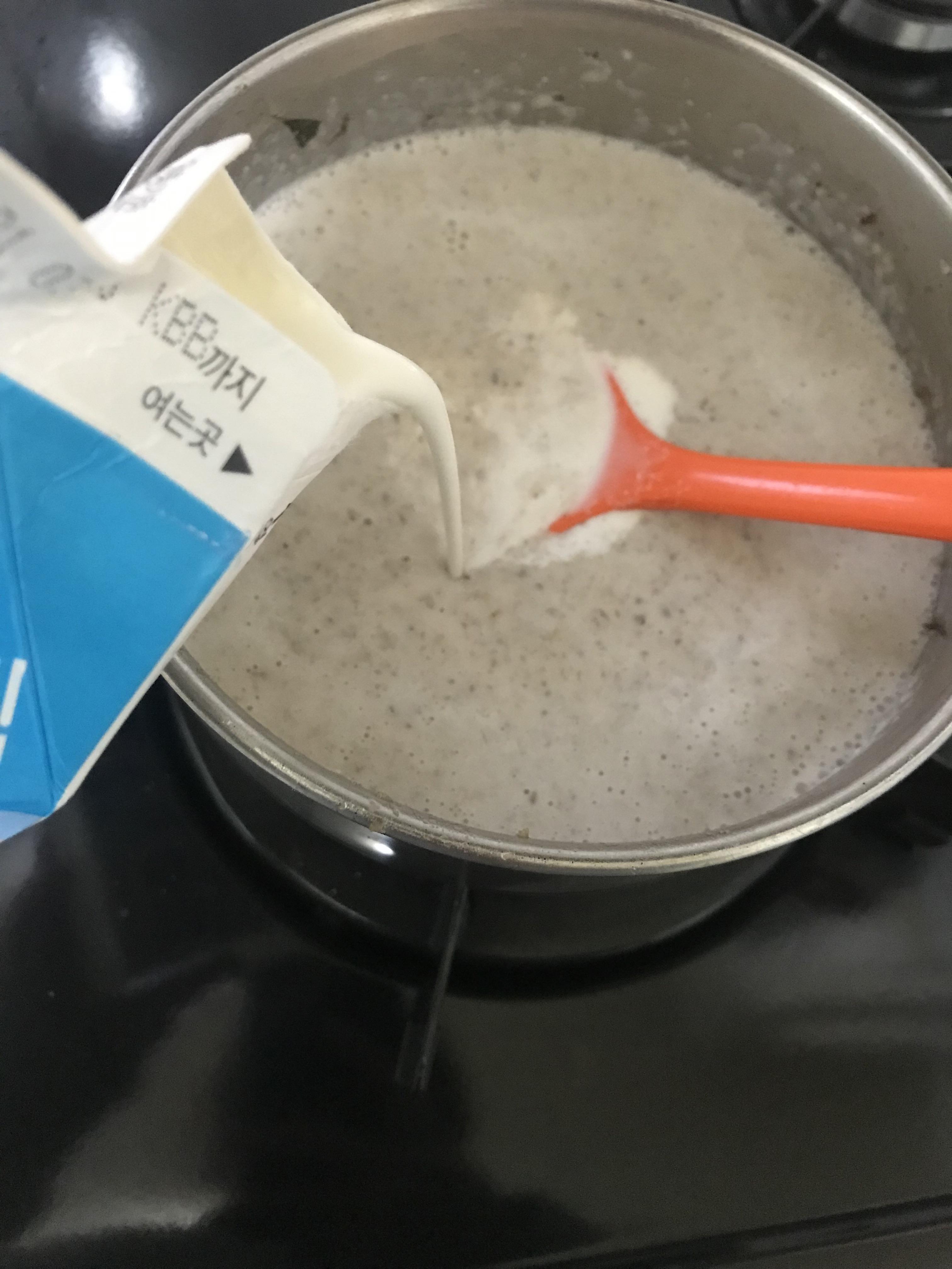 3)볶은 버섯&양파 믹서에 갈기 + 우유 추가