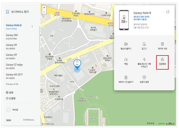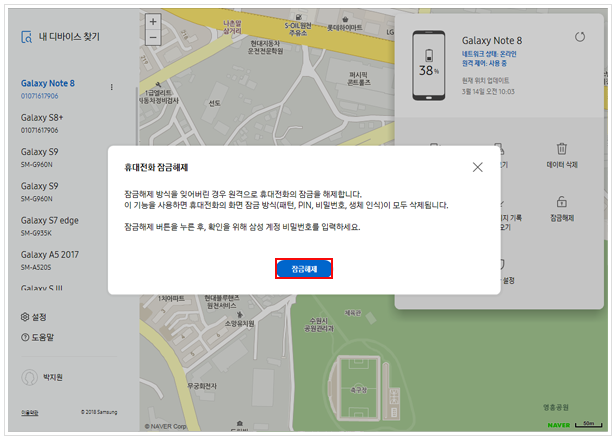 단, 사용자는 삼성 계정에 가입이 되어있고 스마트폰에 등록되어있어야 하며, '원격 잠금 해제'기능은 ON으로 설정되어 있어야 하고, 스마트폰이 네트워크에 연결되어 있어야 합니다!!