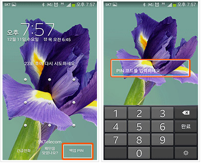 스마트폰에 삼성 계정을 등록하지 않았거나, 계정을 분실해서 위 1번 방법으로 잠금 해제를 하지 못했다면, 두번째 백업PIN을 사용하는 방법이 있습니다.