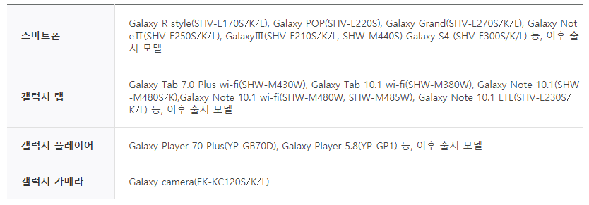 삼성계정으로 잠금 해제가 가능한 스마트폰은, 아래표처럼 2013년 이후 출시 모델부터 해당합니다.