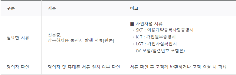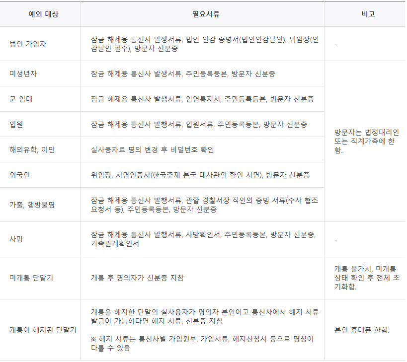 본인이 방문시 지참해야 하는 서류는 아래와 같아요. 그리고 비밀번호만 풀리는 것이 아니고, 휴대폰이 전체 '초기화'되기에, 저장된 모든 데이터(연락처, 사진, 동영상, 문서 등)는 삭제됩니다.ㄷㄷㄷ