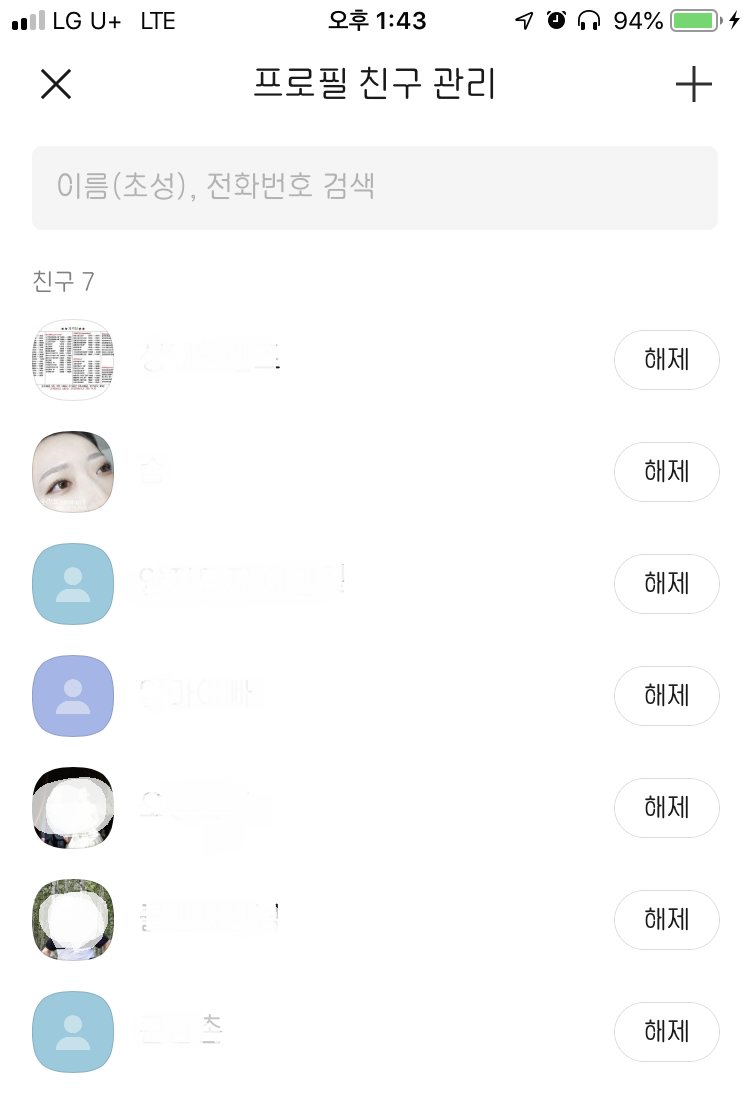 '친구별로 다른 프로필을 설정해 보세요!' 탭을 클릭하니 아래와 같이 기본 프로필 화면이 나타났는데요, 여기서 사진등록 및 친구관리 등 프로필을 편집하시면 되는거에요. 저는 기존 친구 리스트 중 개인적인 연락을 주고 받지 않는 7명의 카톡 친구를 등록해 보기로 했어요. 하단의 '친구관리' 메뉴를 통해 기존 친구리스트에서 해당 프로필에 노출하고 싶은 7명을 등록했어요. 나중에 해당 리스트의 친구들은 '해제' 버튼을 통해 지우고 또 추가할 수도 있습니다.